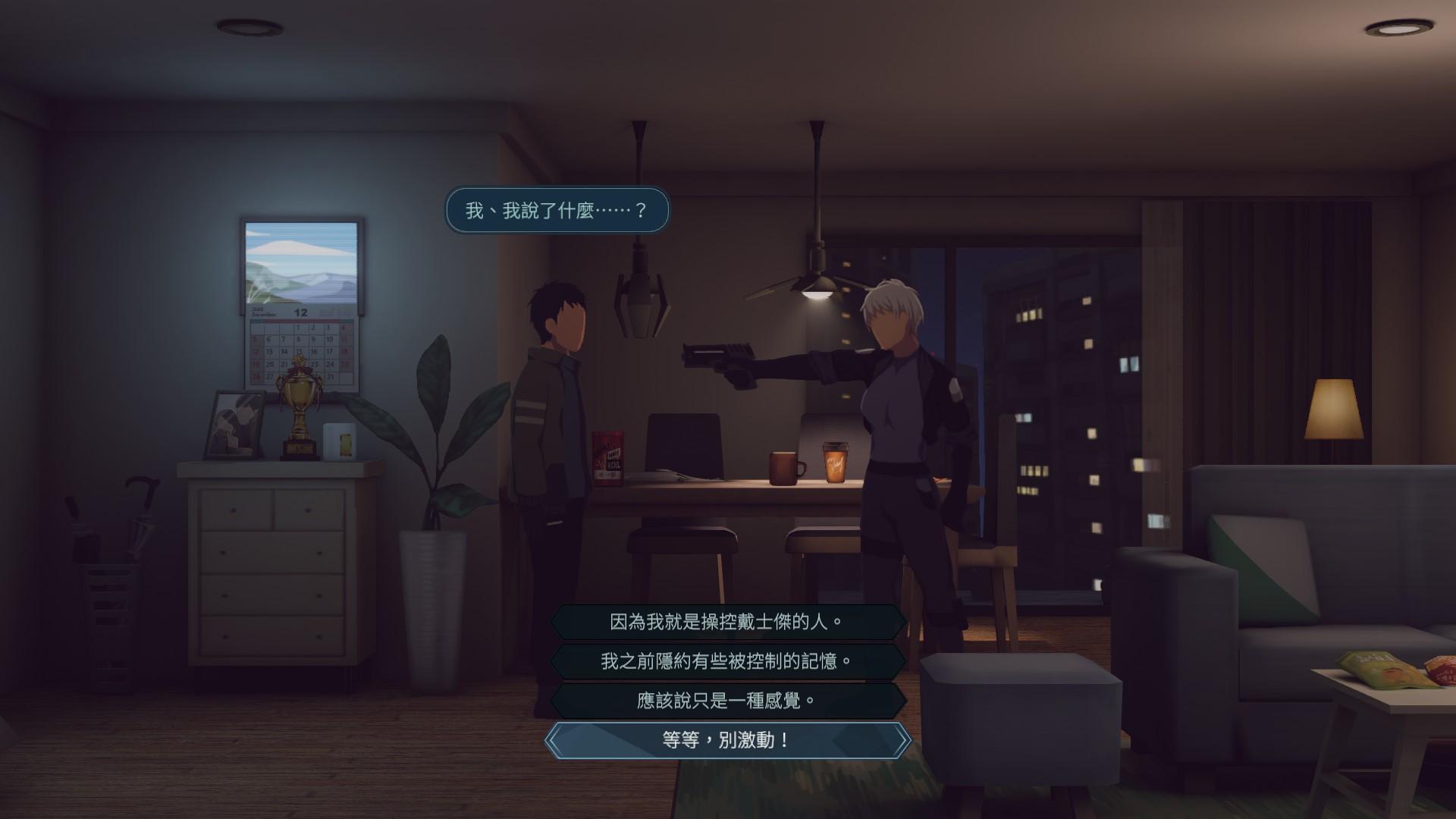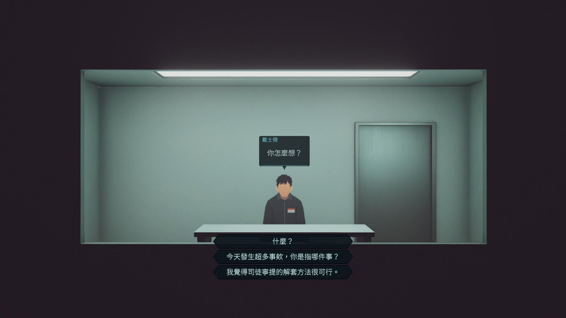 有時候劇情穿插的對白會讓你對於未來台灣的樣貌有一些代入感。 有一些突發劇情的選擇會有時間性,所以基本上我都好難截圖,而且有時候劇情的發展會有一點Jump Scare,有時候那個刺激感甚至讓我覺得我是不是在玩恐怖遊戲!
