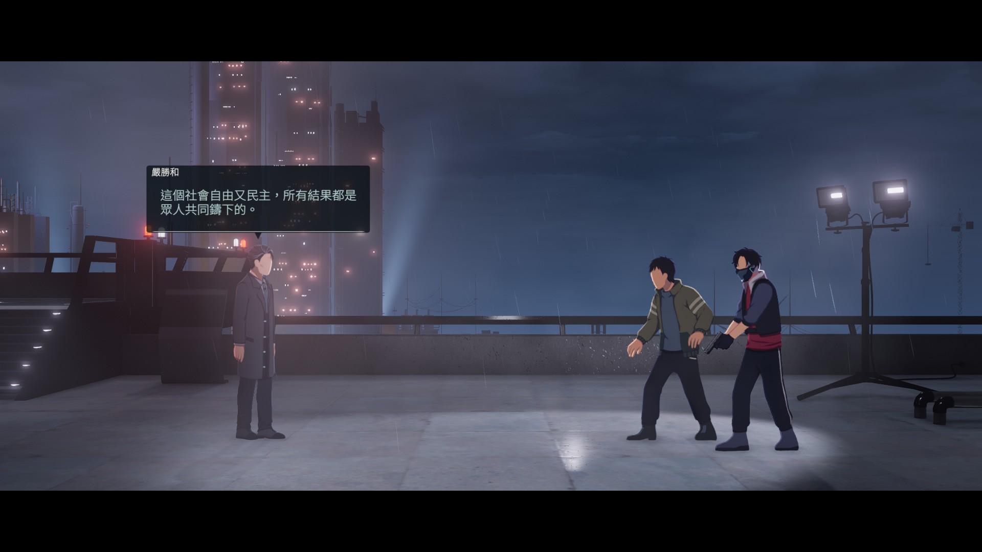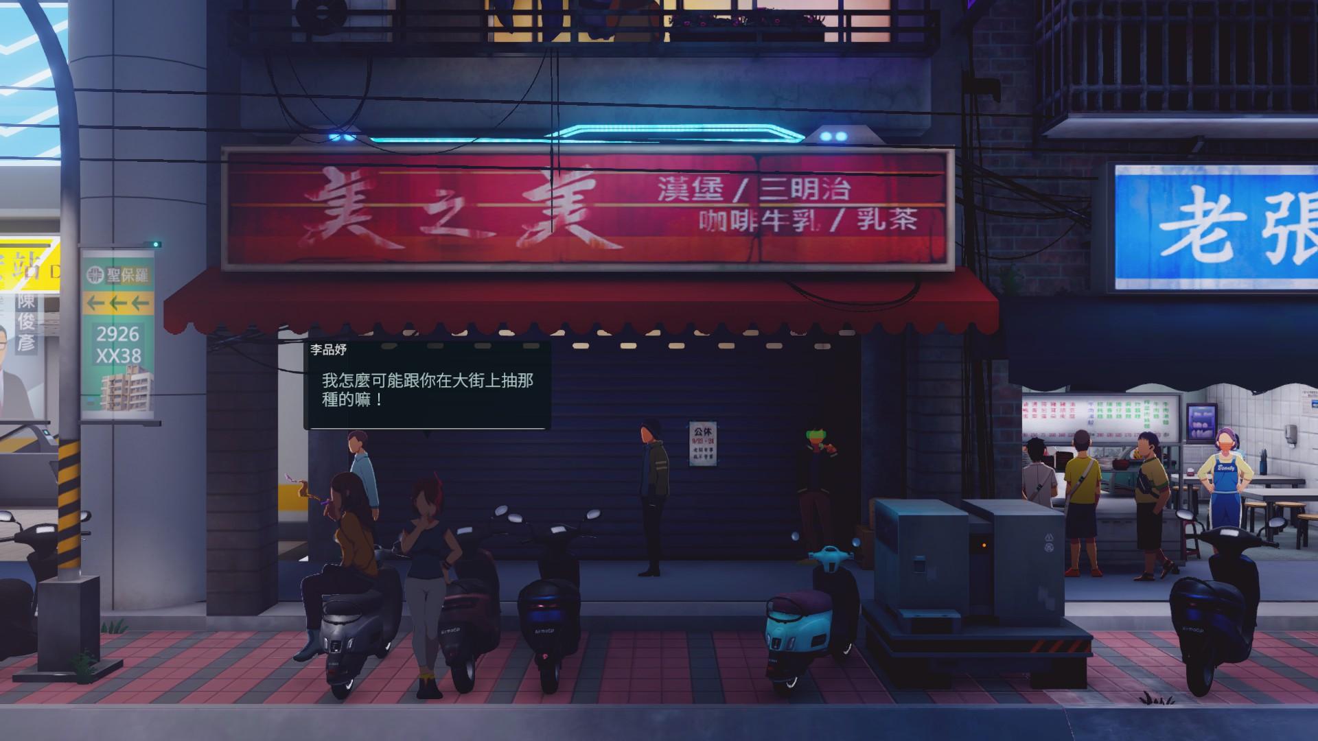 然而撇開劇情,這款遊戲幾乎沒有其他亮點;但對我來說這並非是缺點,反而正是因為除了劇情以外其他部分都非亮點,讓我感受到團隊極度專注於「把故事說好」。雖然舞台是近未來的台灣,霓虹閃爍的場景僅有一處(前面提到的街道,其他地方基本上就是一些常見的地鐵、公司大樓、幫派基地等等的),遊戲性也只剩簡單的QTE,沒甚麼挑戰性。但劇情對話與角色塑造卻十分飽滿。從路人的隨口對話,到財團掌權者的心境轉折,都交代得非常有層次。