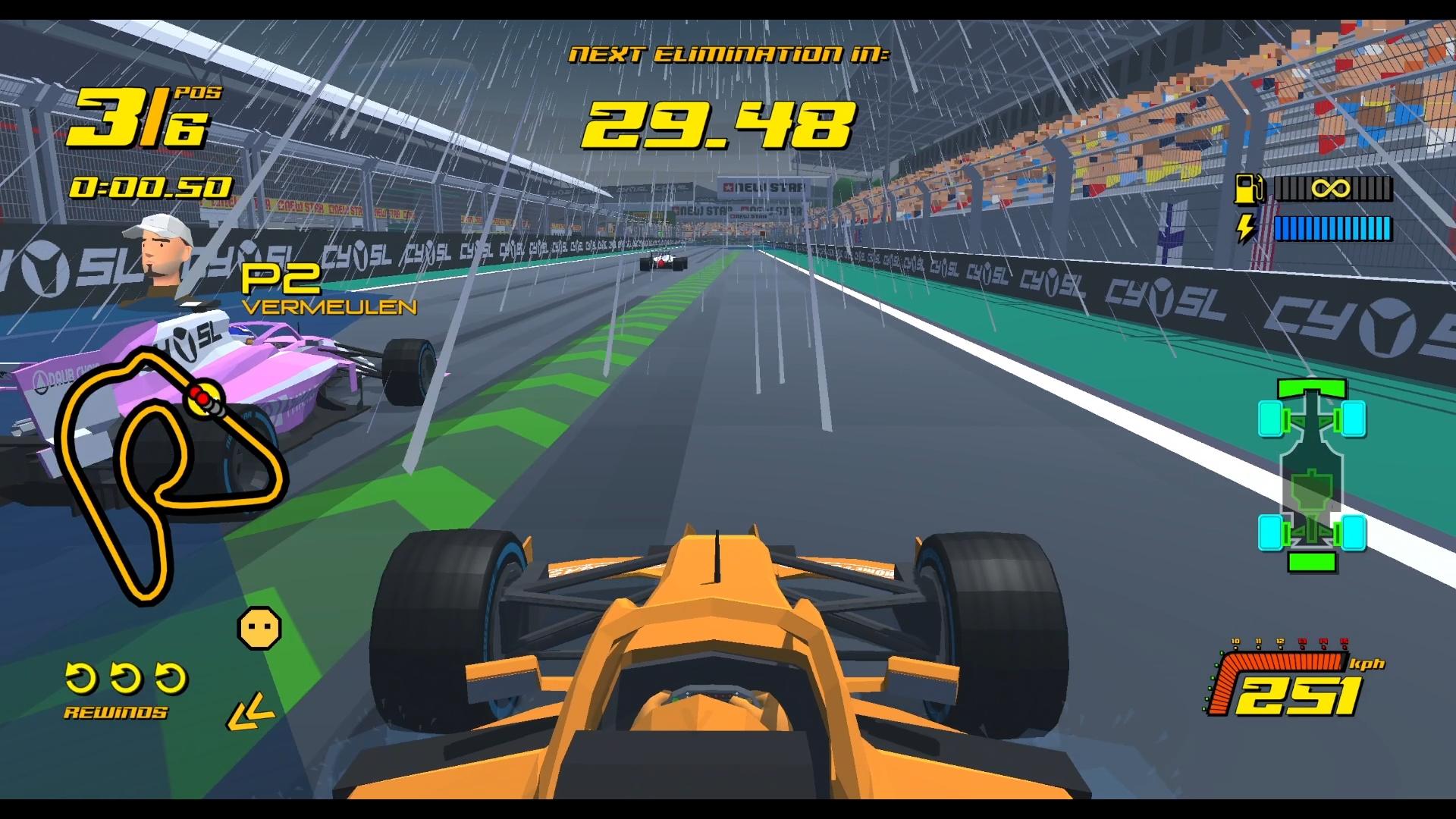 與《F1® 25》比較的話,《New Star GP》像是其極簡版本,看似陽春,實則麻雀雖小,五臟俱全,競速遊戲該有的系統它都有,只是系統設計都經過大幅簡化。