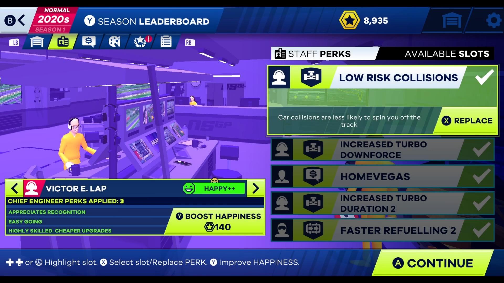 在這裡玩家可以進一步決定自己的賽車風格。對新手玩家而言,選擇工程師技能提升車輛性能絕對是快速適應賽道的首選;而策略性玩家則能在進站策略作文章,加速進出站時間,建立起優勢;或著是什麼都不選,憑著過硬的技術遠超對手登上頒獎台,獲取豐厚的Bux獎勵。
