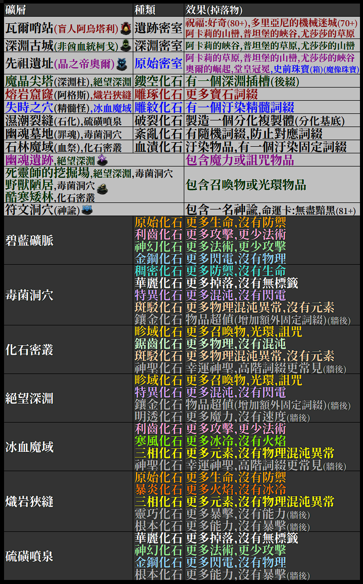 【POE】掘獄礦坑資訊表 3.26 (2025/7/28)