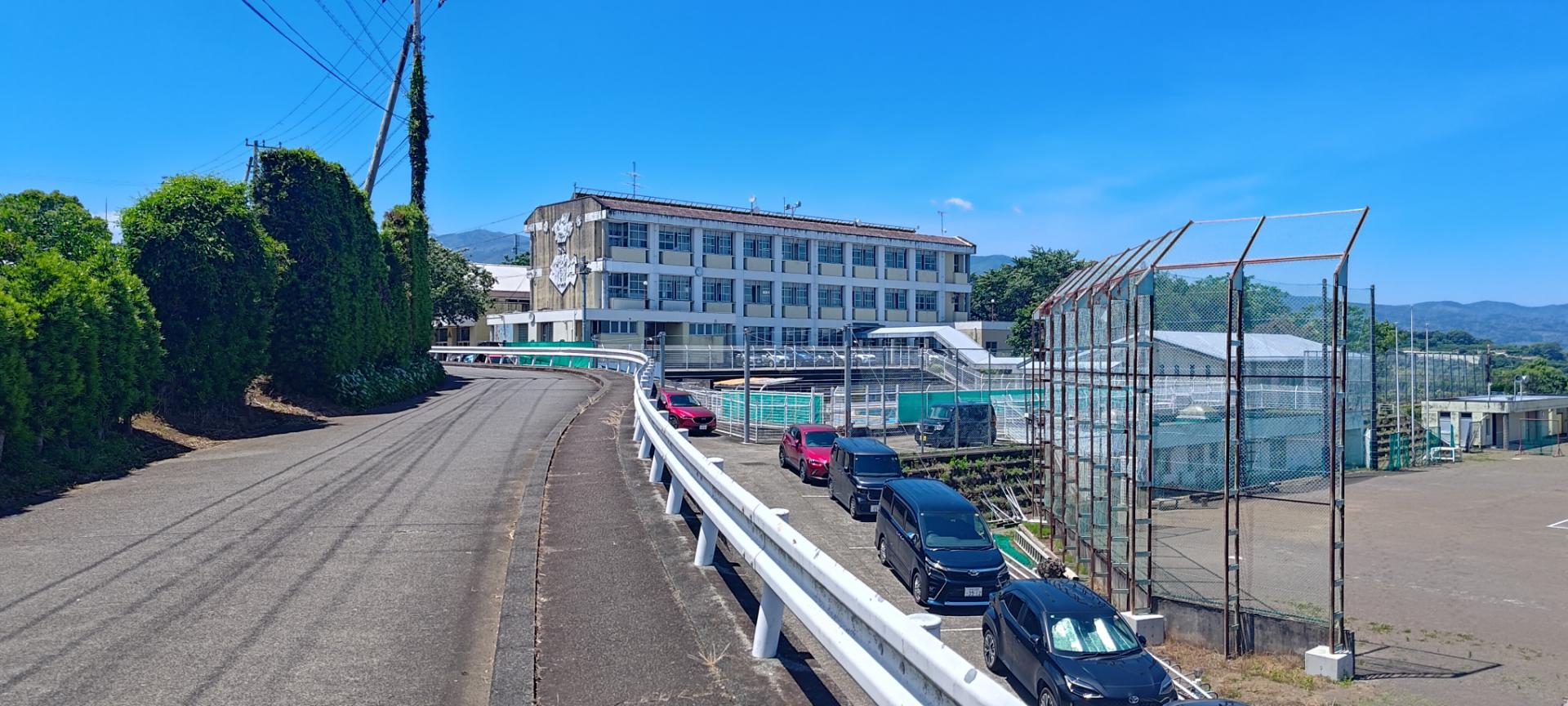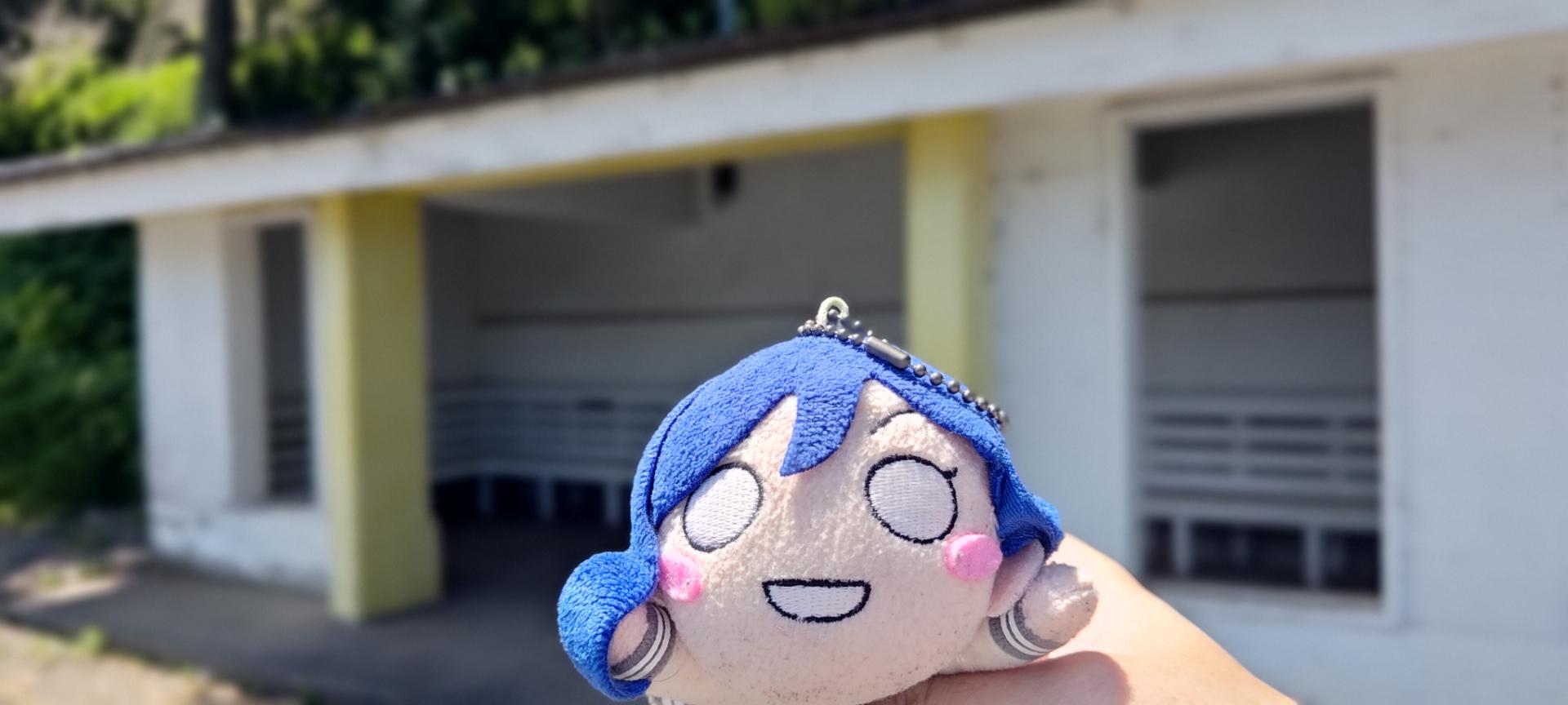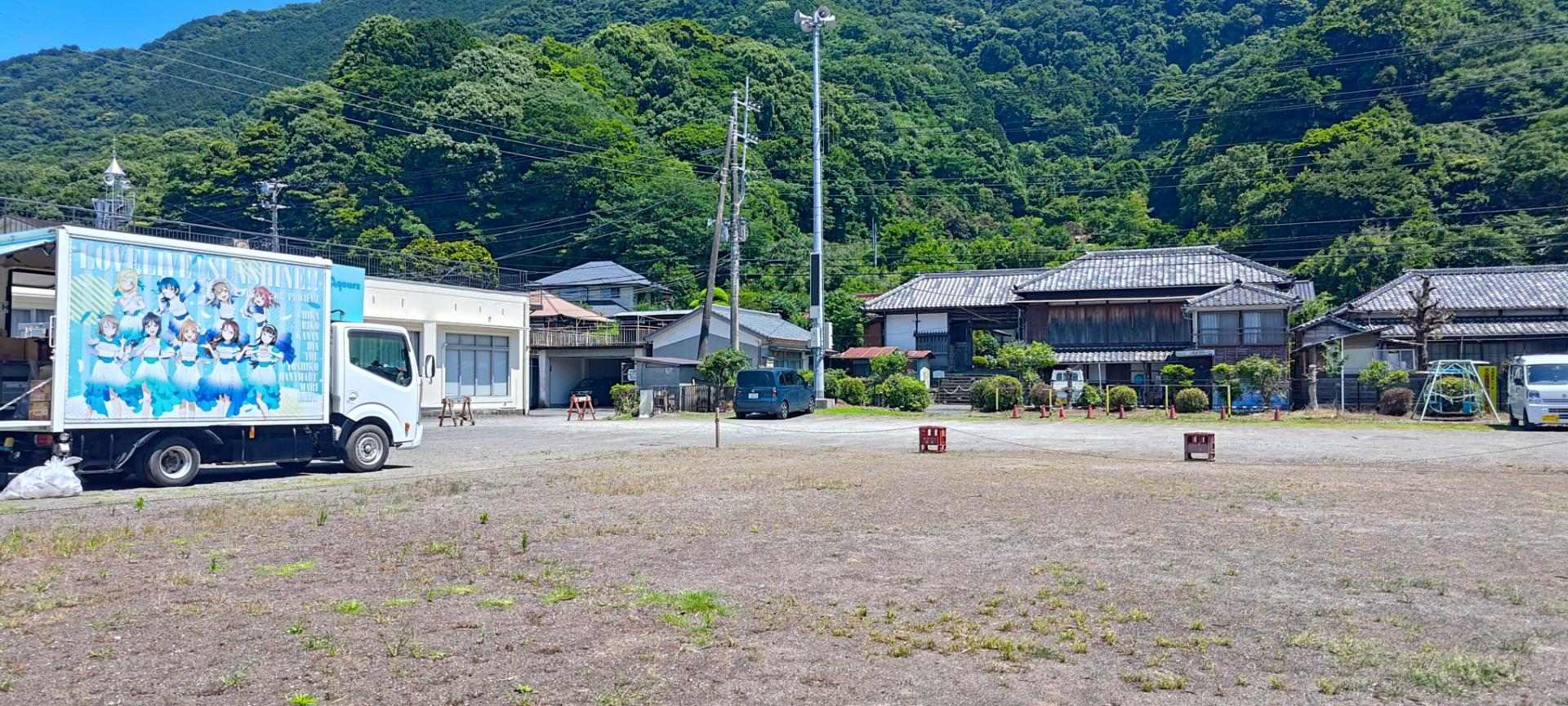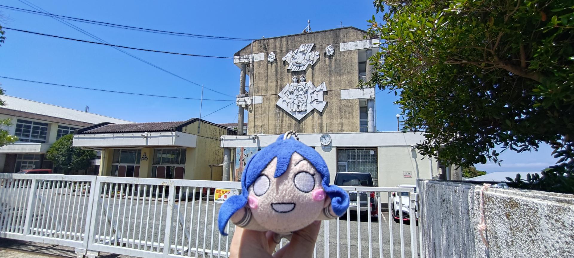 2.沼津市立長井崎中學校:AQOURS發跡的起始點。這段用走路前往,沿途經過學校下面的公車亭。那這邊還是要宣導一次,學校是不能進去的,你只能在校門外拍照打卡,請務必記得。