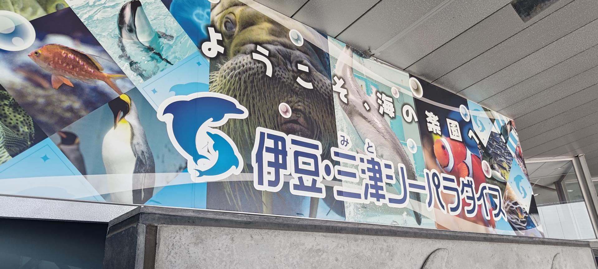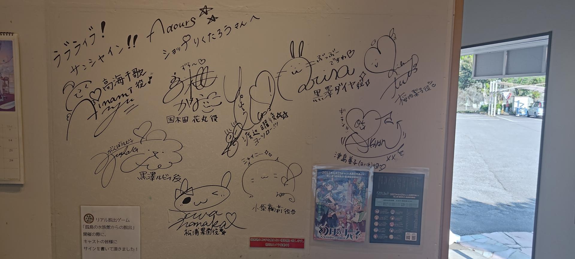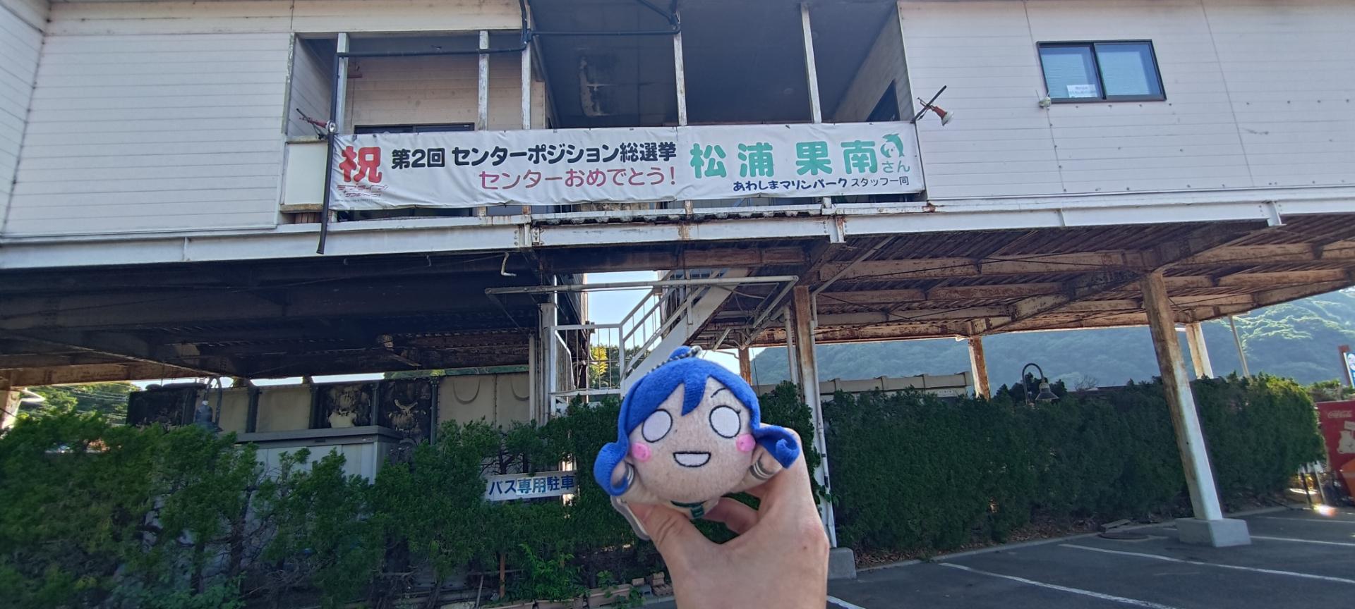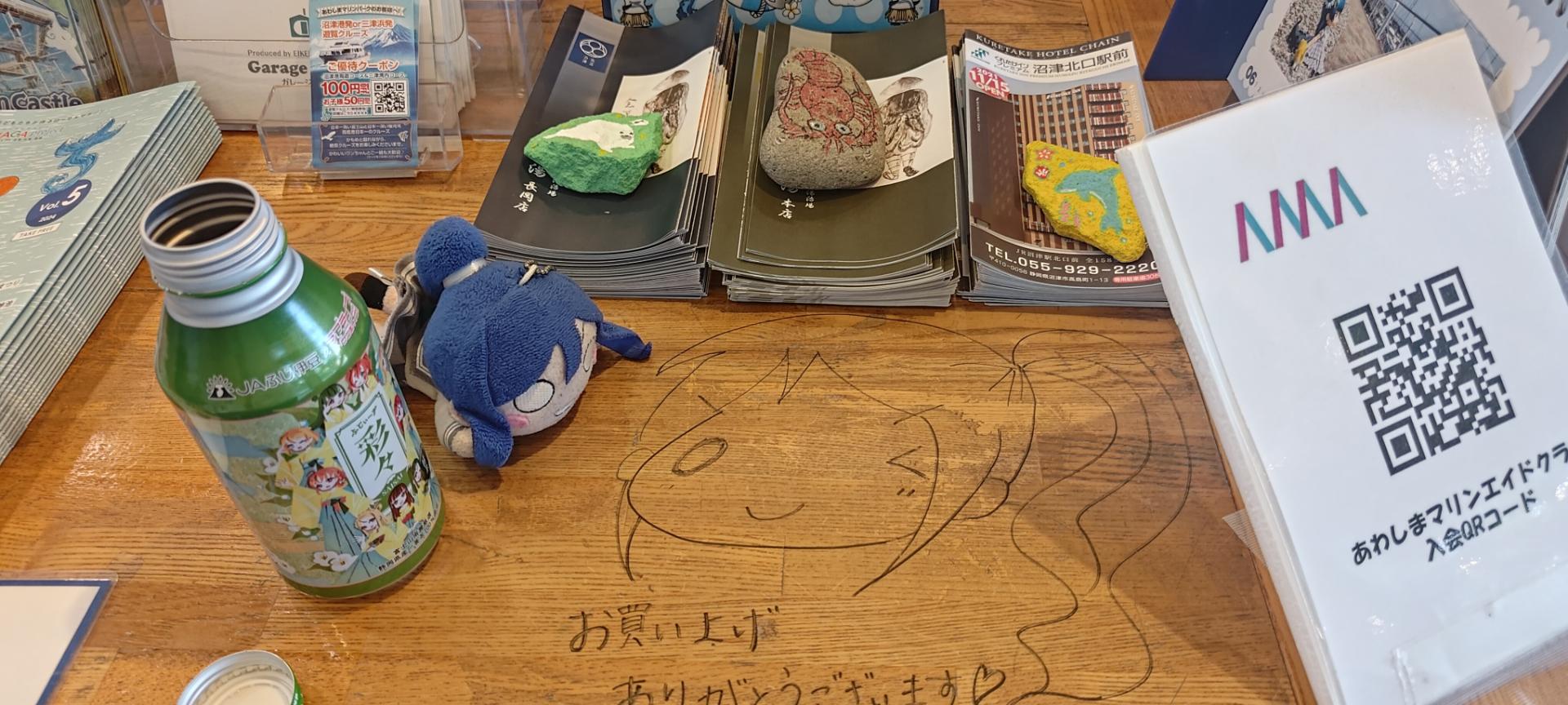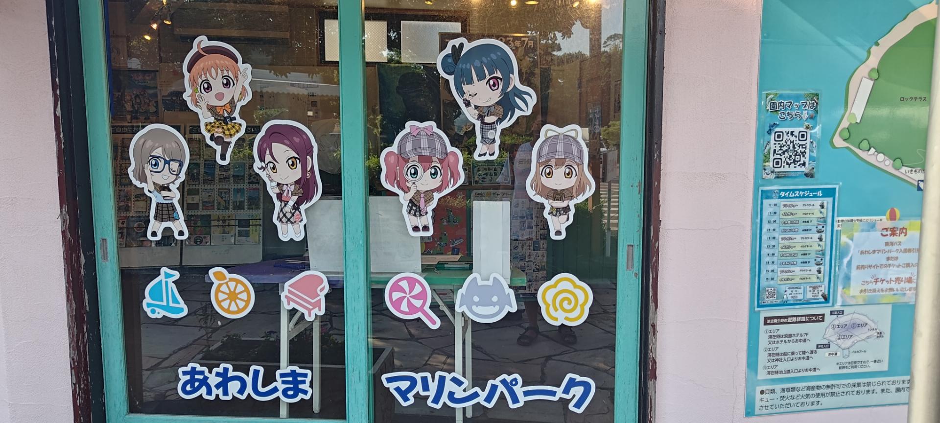 從內浦沿途用走路方式收集印章後,終於來到あわしまマリンパーク チケット売り場(Awashima Marine Park Ticket Counter),一進來就看到橫幅布條,真的笑出來,原來是慶祝果南的部分w