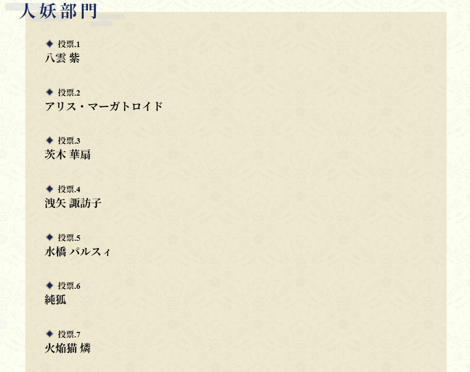 如題,一年一度的東方人氣投票又開始了,而我今天也是在一番糾結後投完了,之後應該就不再動,等之後看投票結果。