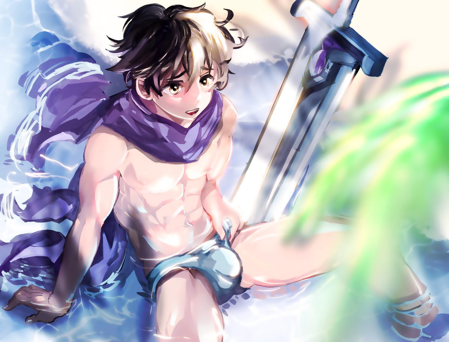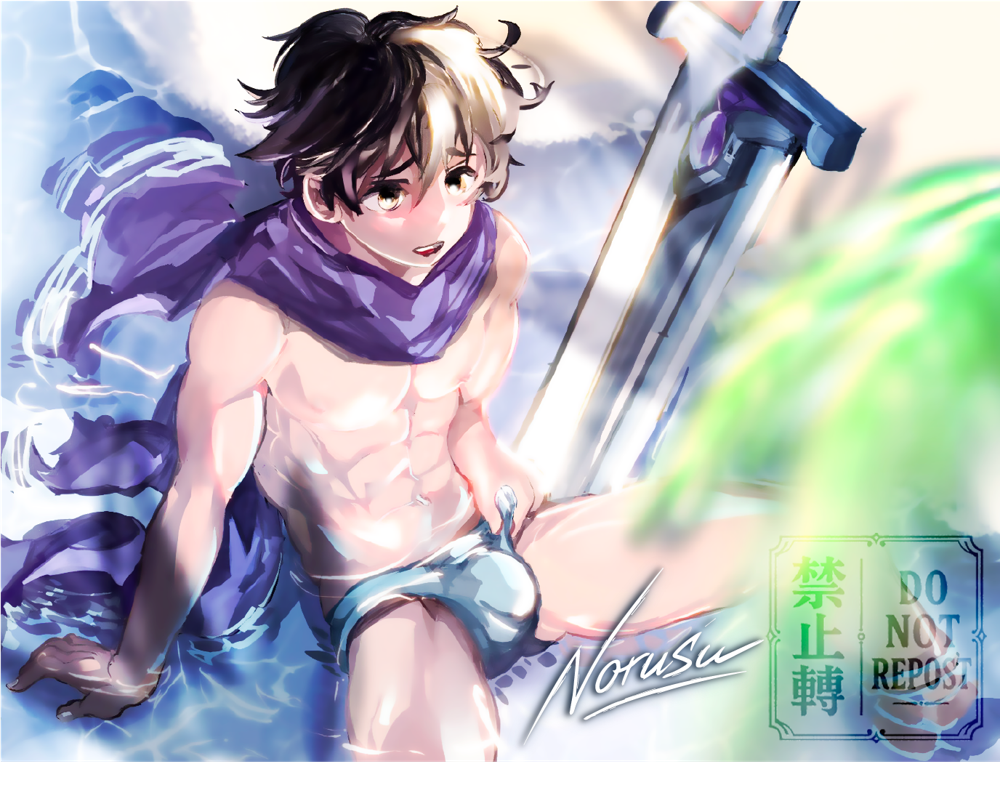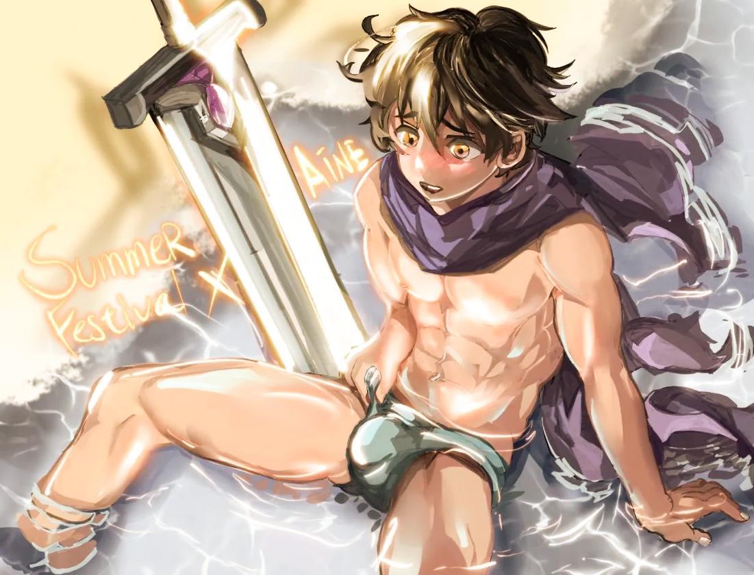 從草圖到光影,一步一步慢慢堆疊,就像給角色注入呼吸。肌肉的線條、布料的流動感,都是反覆修正後的結果。最後加上色彩的層次,讓卡恩真的像坐在水邊一樣鮮活。