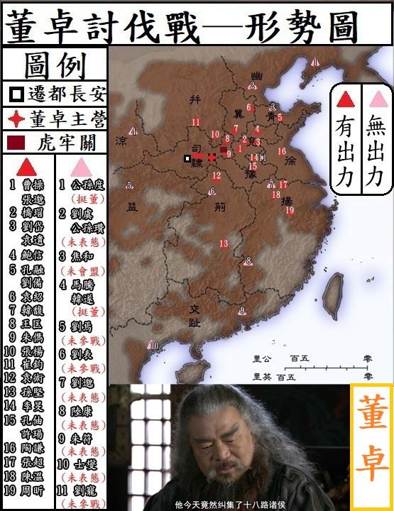 「董卓討伐戰」發生於東漢獻帝初平元年至2年(190─191),主要是關東各地太守、刺史,不滿藉天子獨霸朝綱的權臣董卓,於是聯合起來組成聯軍,進行討伐董卓的軍事行動。當時「十常侍之亂」剛結束不滿1年,也是董卓剛廢少帝、另立新帝的混亂局面。