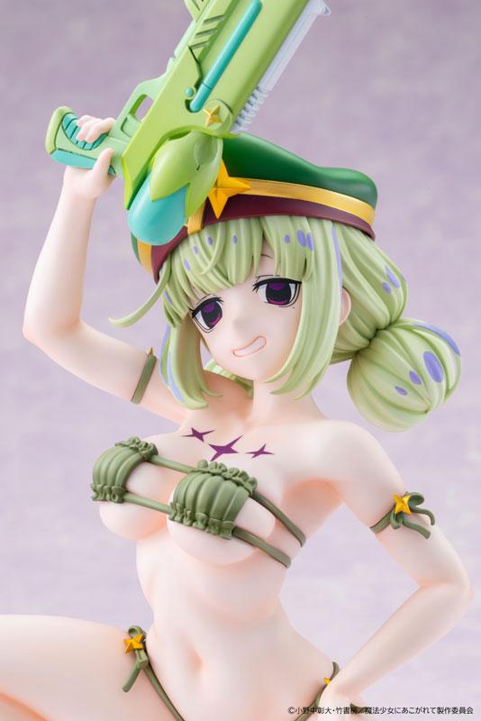 出自《夢想成為魔法少女》,邪惡組織「艾諾爾米塔」的幹部獵豹以個性十足的軍風比基尼姿態化身為1/6比例模型。她手持水槍並露出無畏笑容的姿態,將軍事風格與可愛感融合的泳裝造型,更加突顯出她活力滿滿的魅力。