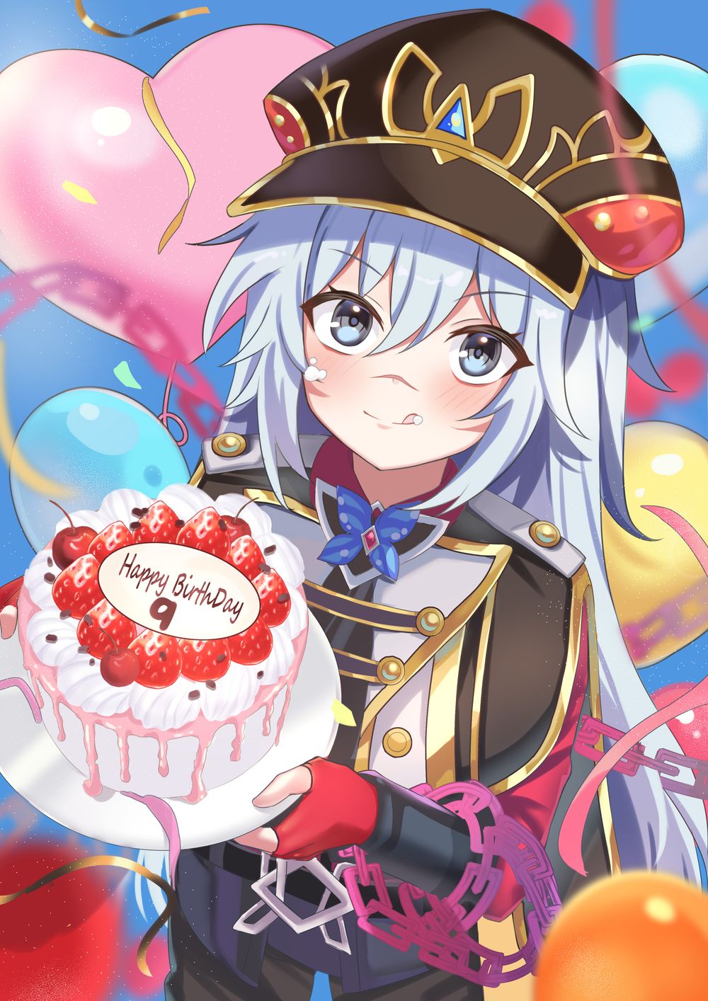 一邊畫的時候腦中就浮現鬥神端著蛋糕、臉上還帶著點小笨拙的神情,感覺很適合九周年的氛圍~