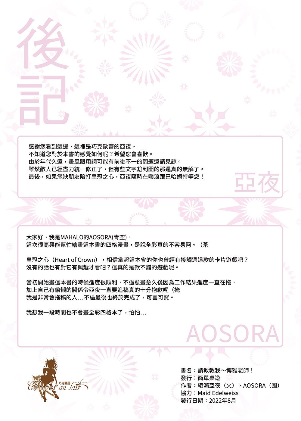 【王冠之心】《請教教我博雅老師》:後記