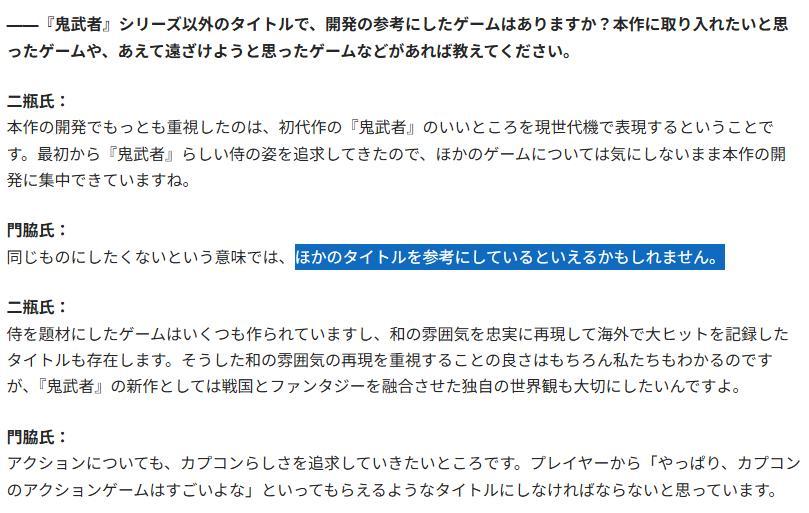 後記: 鬼武者的確年代比較早,但過往系列作並沒有出現QTE 、耗盡量表後的處決 、潛行加連鎖暗殺慢鏡頭後輸入按鈕選對象 、雙方體幹值這類設計,望周知。
