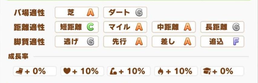 專屬稱號「今でも愛してる」,櫻花賞、優駿牝馬、秋華賞、伊莉莎白女王杯、寶塚紀念優勝,基礎能力賢達到1200以上。