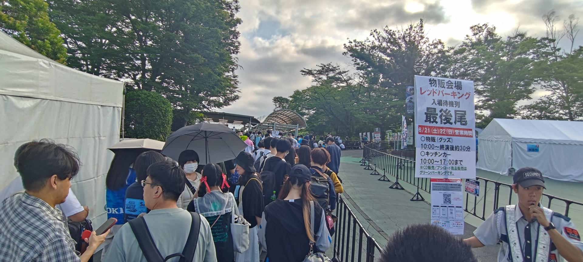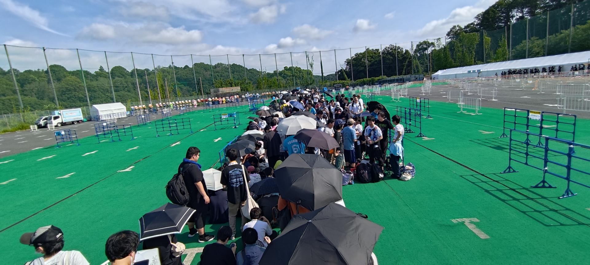 只不過如同我前面所述的,大熱天的情況下,在西武巨蛋旁的停車場那邊等候十點半的物販,真的心臟要很大顆,而且發現不管是我準備的水、我買的補給品,還沒排到一半就用完、喝完,連帶的溼紙巾都已經被熱成乾的,後面時間僅靠幾張放在背包的紙張拼命的搧,以免中暑。
