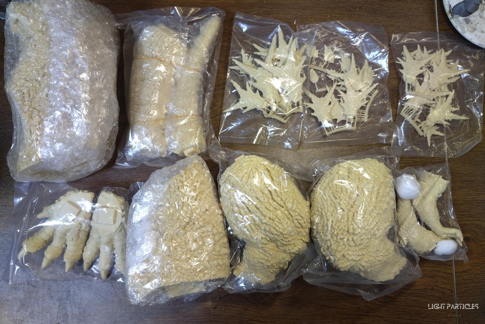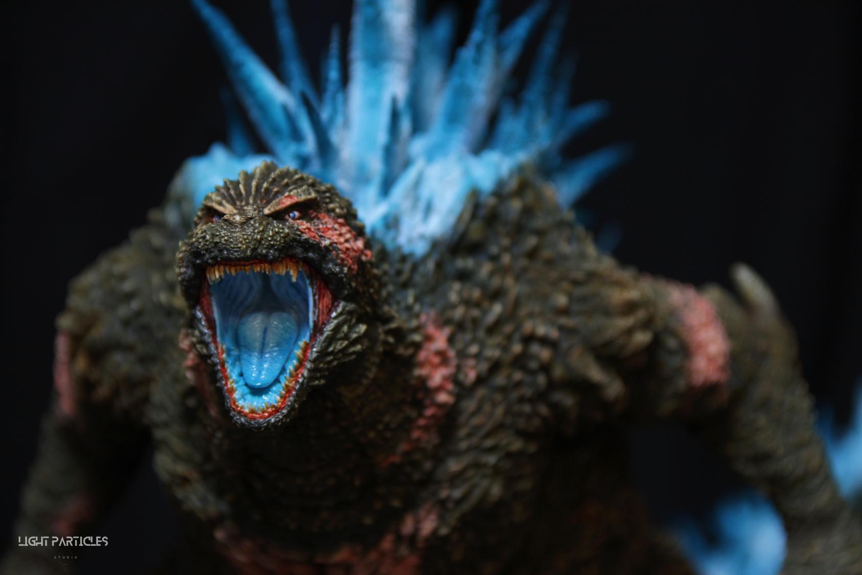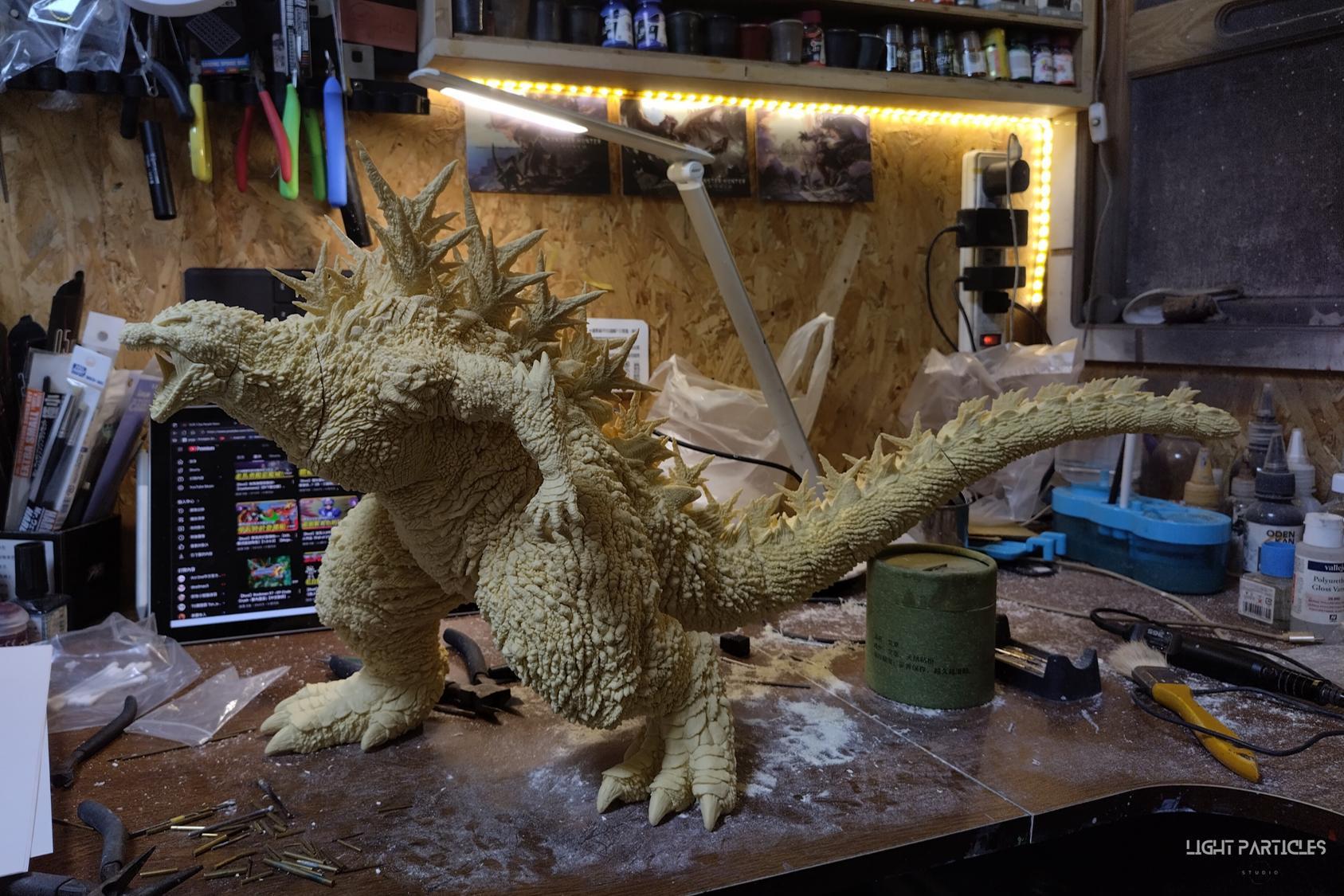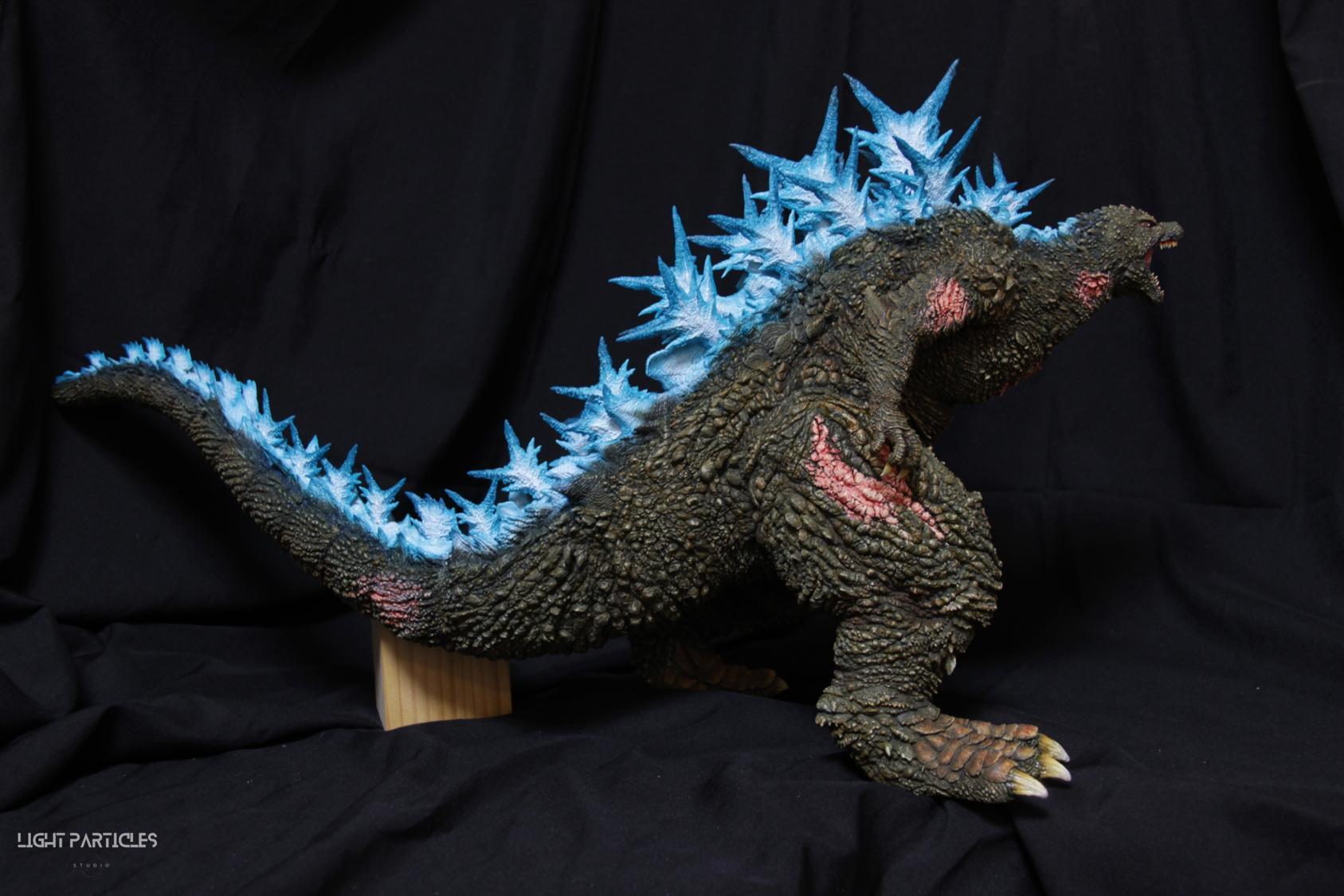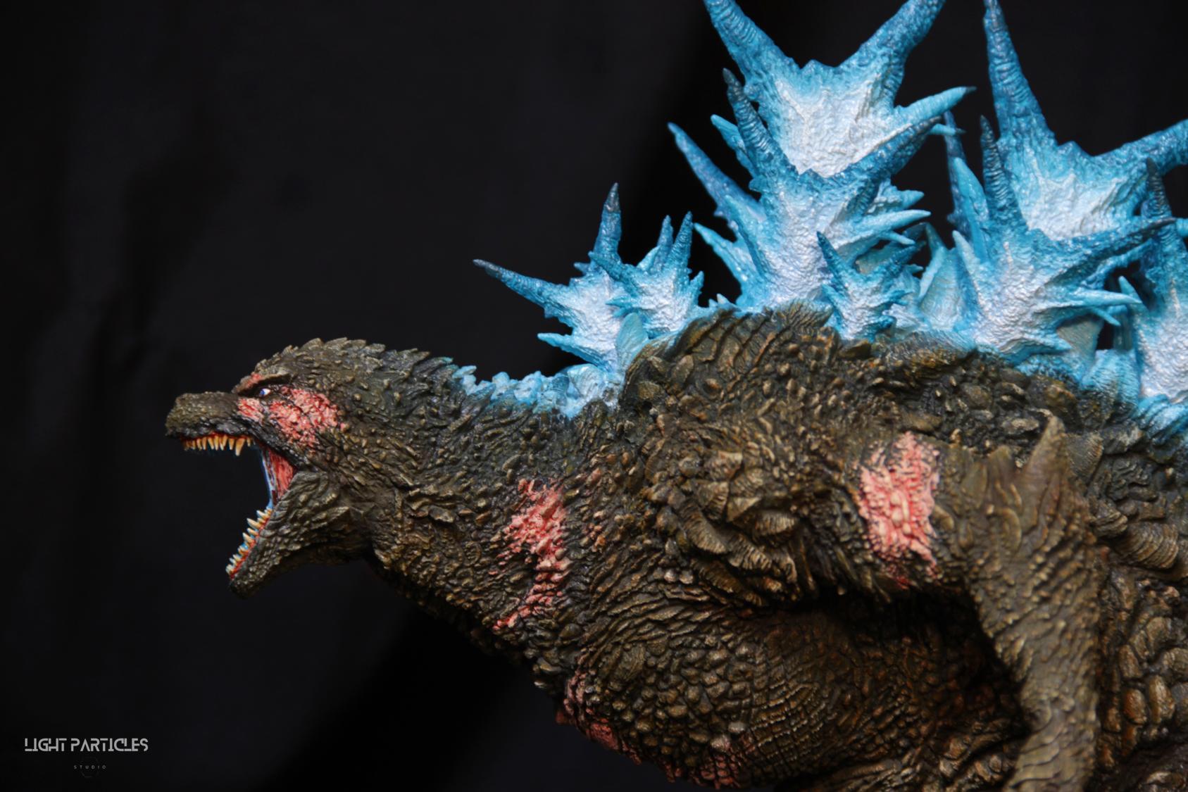 第二套委託,黑龍工房 哥吉拉2023銀座咆哮套件。需求大致分為幾點,藍眼,熱線嘴巴並帶有生物血肉感,塵土色指甲,海神作戰的背鰭顏色以及比較集中熱線範圍,還有增加身上傷痕區域。為了達到委託需求,背鰭呈現較上次製作調整作法與顏色來維持高光效果,嘴巴也把口腔內外做出不同的顏色,手繪傷痕並調整分布製造較隨機的效果。最後拍照增加UV燈效果呈現,讓熱線發光效果往上提升。即使第二次製作這組套件,還是對套件的品質與雕塑細節感到驚喜,真的很值得收藏。希望大家喜歡這次的呈現~