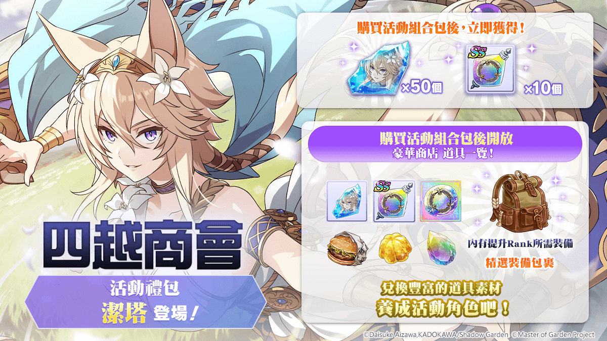 禮包方面,於四越商會展開販售包含 活動禮包【潔塔、外典第 2 章復刻轉蛋券禮包、外典第 4 章開幕紀念禮包。