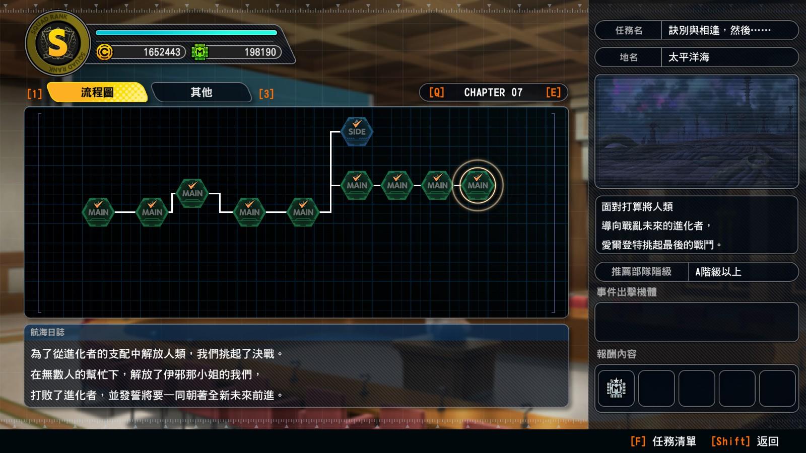章節7主線:【斬裂黑暗的光】→【宇宙鳴動】→【前往新世界】→【未來未誰而戰】
