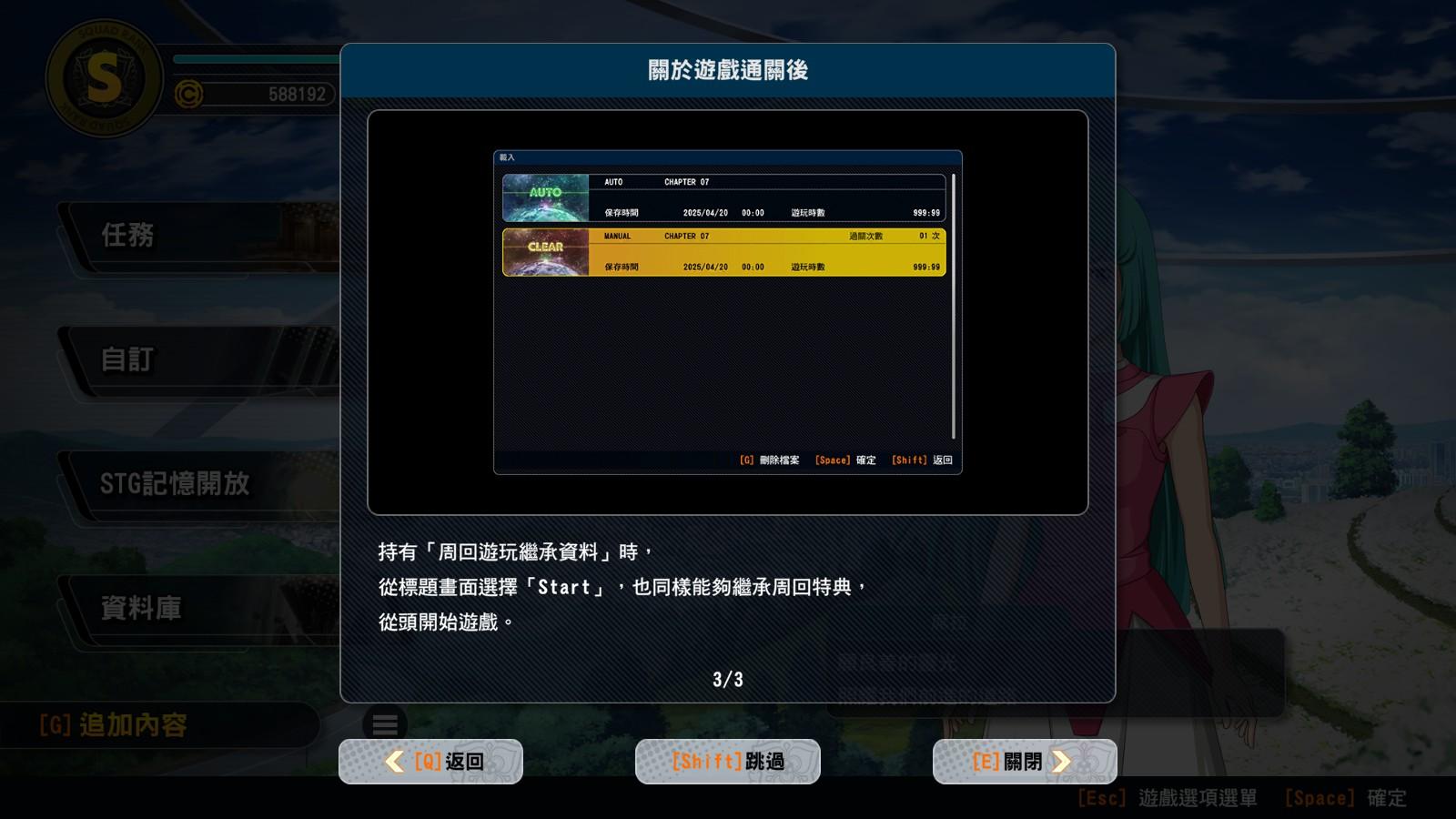 回到【標題畫面】選擇,Start可以讀取通關的週目存檔
