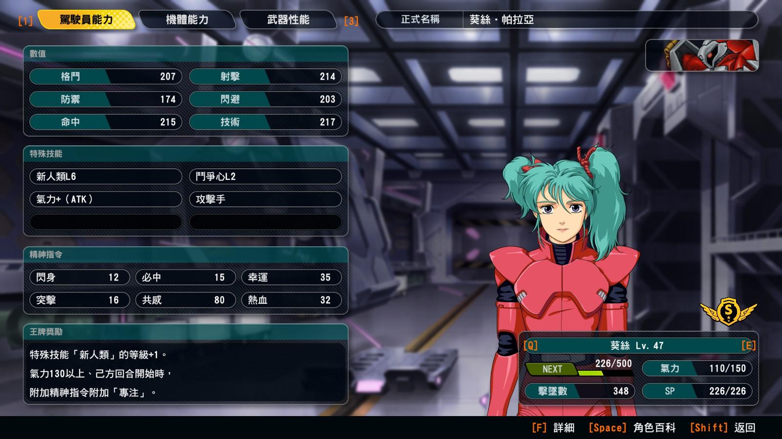 【機動戰士鋼彈 逆襲的夏亞】:葵絲(150)←容易錯過-單純蒐集擊墜數