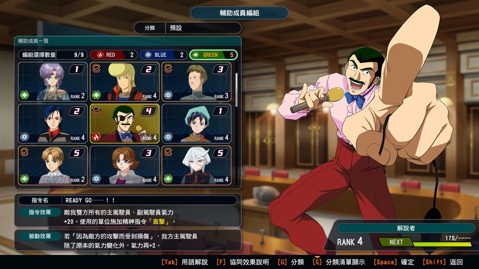 ※【夏亞】是章節3【紅色彗星襲來】才會加入的。(包含:傑克斯、諾茵、煌)
