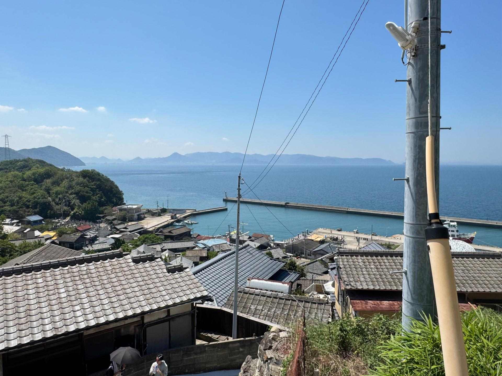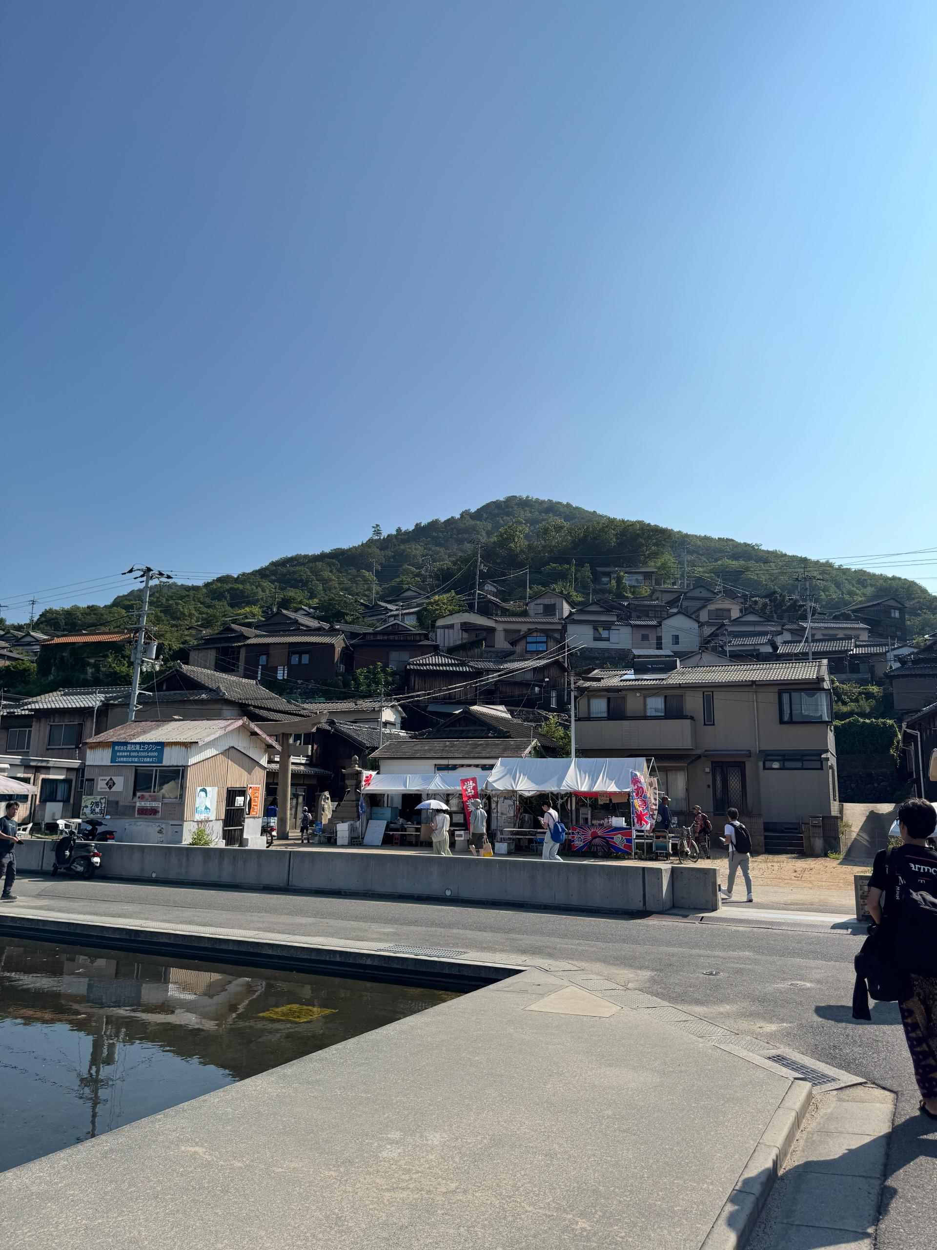 沒想到在港口這裡還有提供免費的遮陽傘給大家使用,太貼心了~後來在女木島和直島也都有看到!