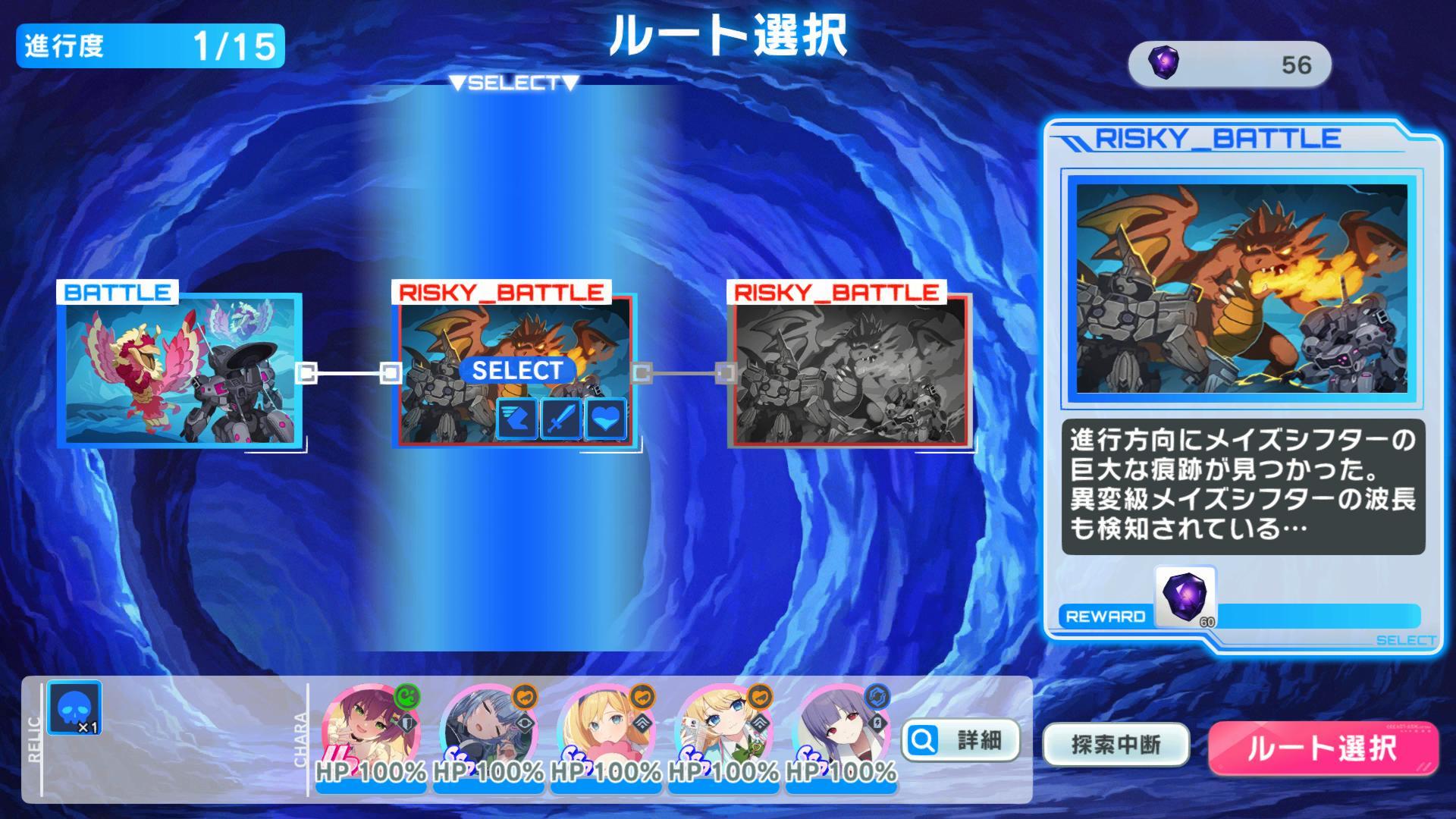 迷宮每五次路線選擇會打一次BOSS,每五層的大關會多一隻BOSS