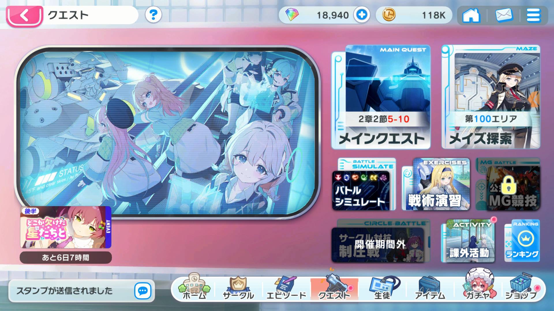 6天就殺到最新進度了,接下來應該每天登入兩次解每日吧
