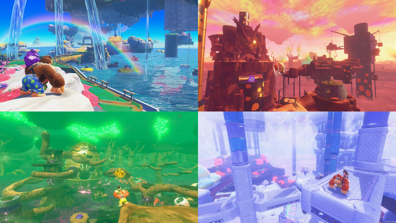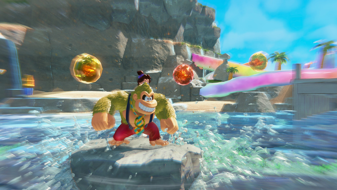 遊戲形式延續瑪利歐奧德賽,但做出截然不同的遊玩體驗,更加著重於粗暴爽快的動作元素:有敵干擾?出拳開扁;山壁擋路?雙臂開爬翻過去、雙手開挖鑿落去!空手抄岩石,一陣揮舞更是紓壓!在 DK 拳頭面前,只有 K 幾下,沒有 K 不穿的問題。