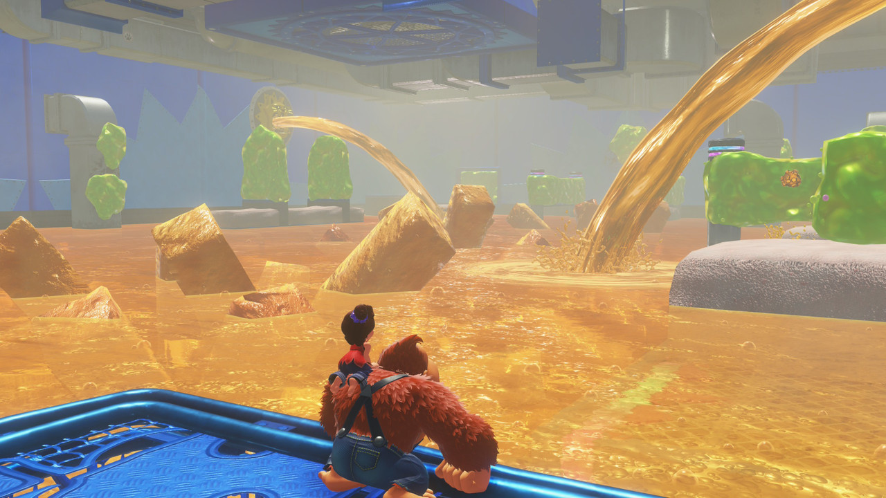 箱庭一詞來自日語,意指箱子中的庭院,是一種微縮模型藝術;平台跳躍的關卡,亦有如同箱庭般的觀感。這次 DK 從以往 2D 跑酷變為 3D 箱庭的地底世界,採用任務式的線性流程,朝地心邁進;中途指引非常明確,完全沒有迷路的問題。