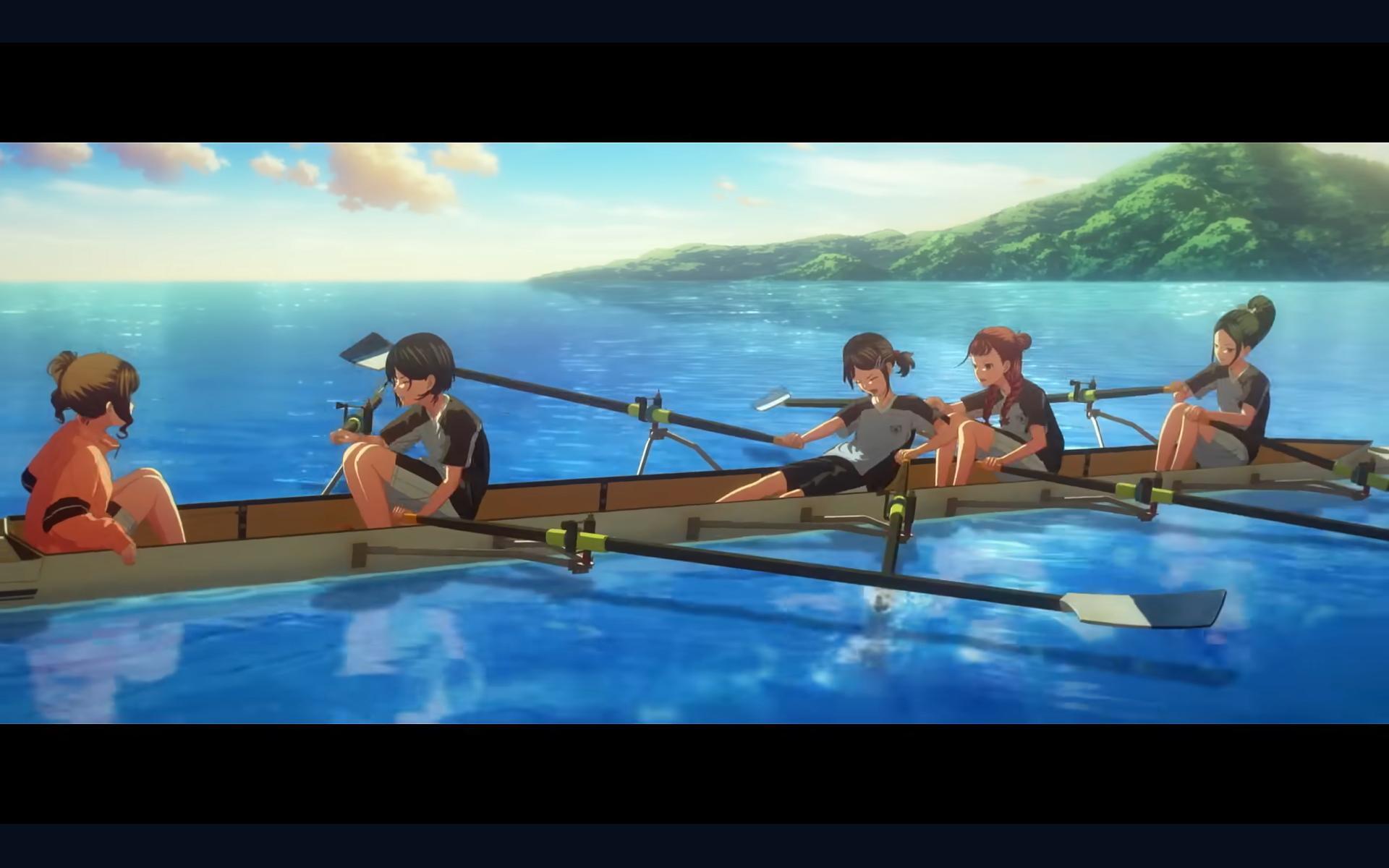 其實也好,畢竟單看「划船的過程」並不會那麼有趣,不像是排球、足球等運動有激烈的摩擦,在比賽時,會切換鏡頭,從上往下俯視、從遠處、從側邊看各位角色以及其他隊伍的表現。讓原本較為枯燥的過程變得有趣、有緊張感。