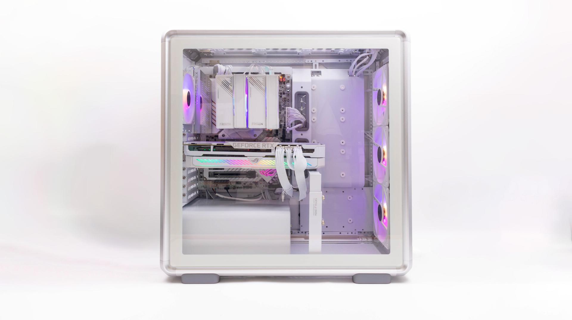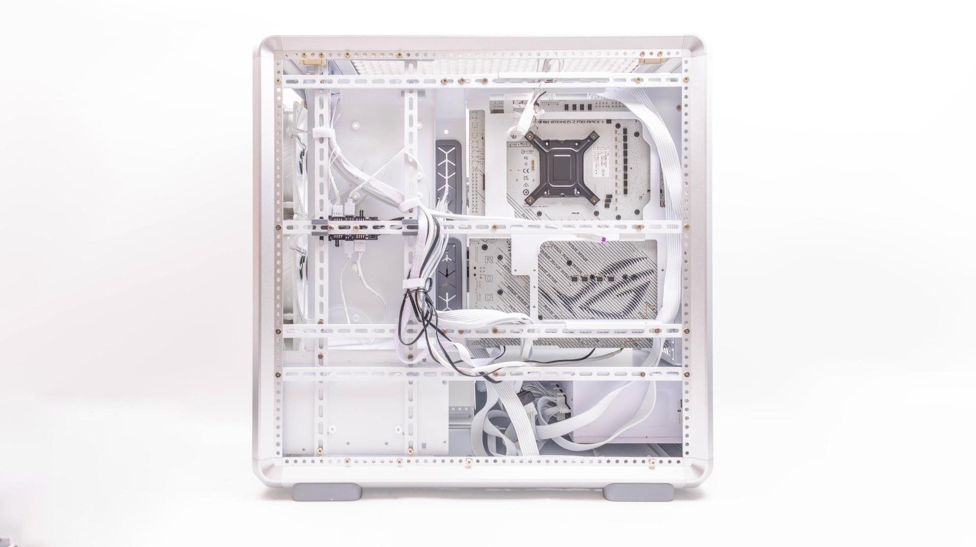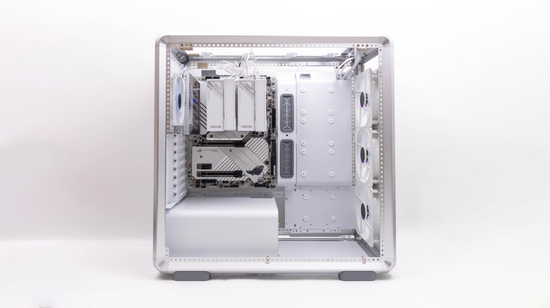 銀白色的 MasterFrame 600,當然也要搭配白色配件來組裝,挑選 Z790 ROG APEX 使用,在挑了顆順手的白色塔散與白色電供使用