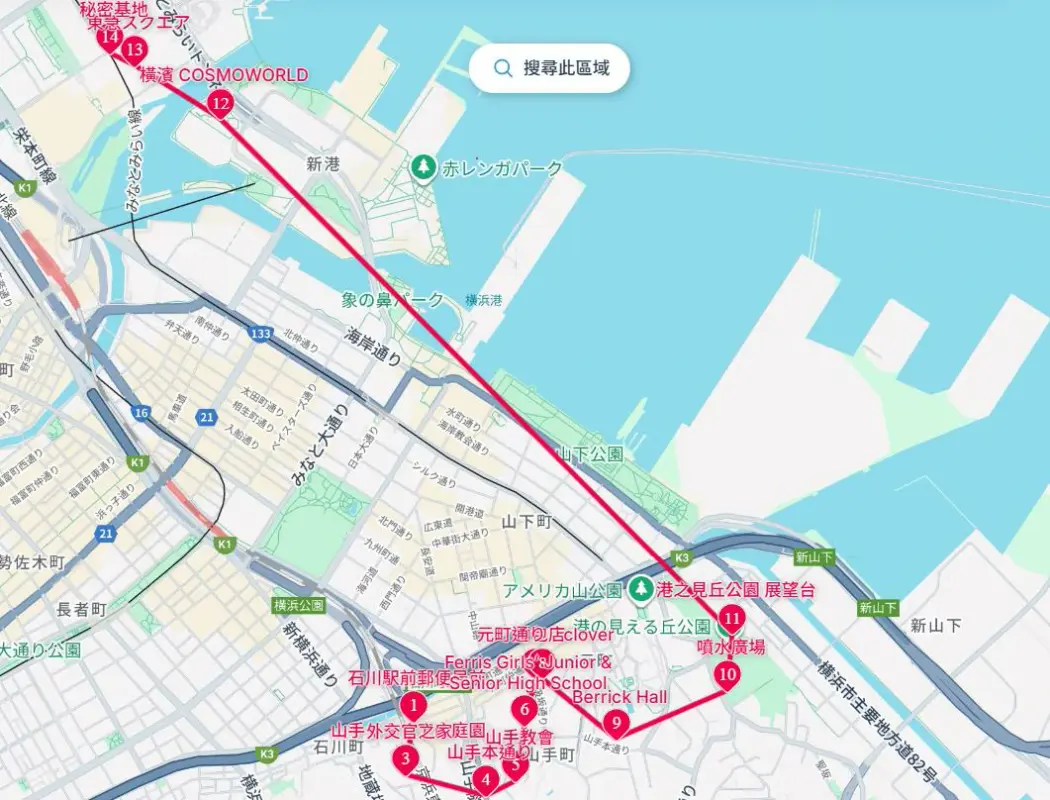 跳過山下公園、開港紀念館和紅磚倉庫(日後此處應有連結)