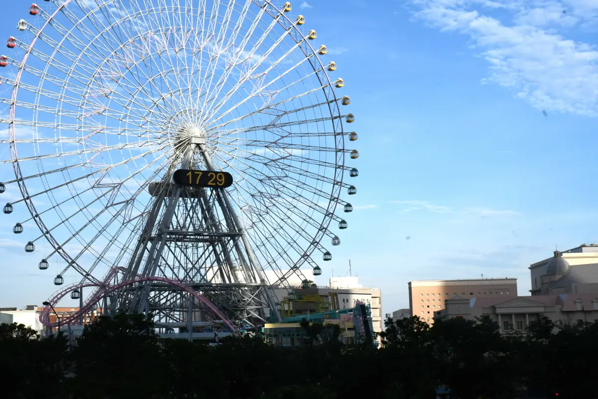 過了紅磚倉庫繼續往前走,遠遠就能看到摩天輪