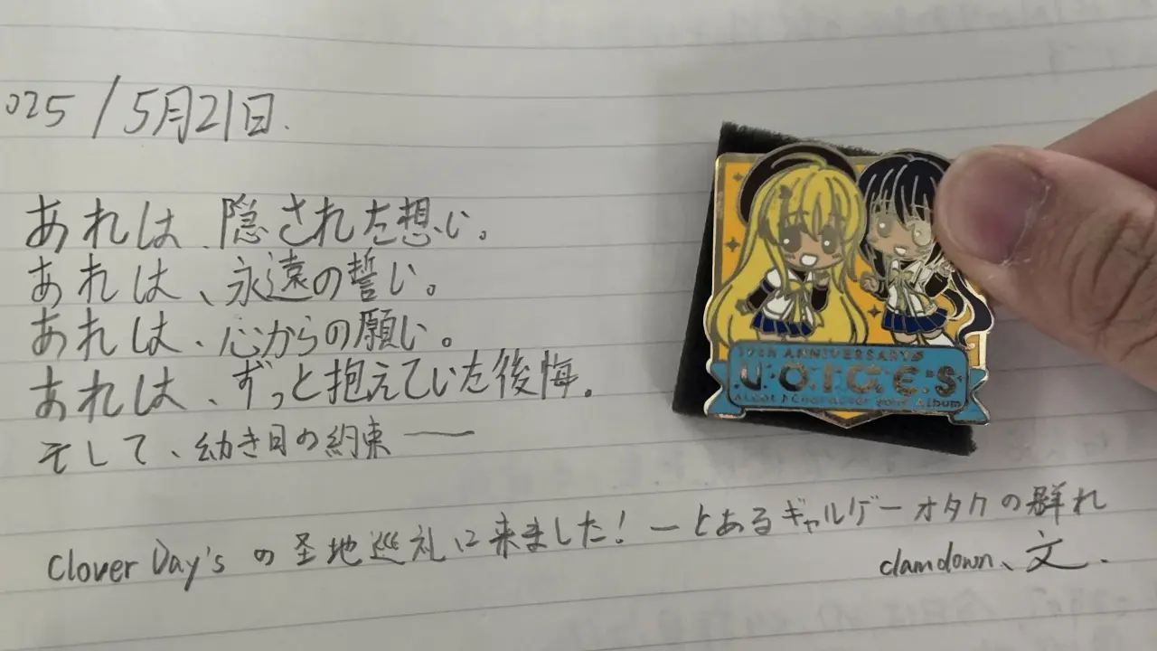 Cloverdays 這部作品本是我在幾部大劇情作間充當緩衝的調劑,但是也帶給我了些許意外的驚喜,雖談不上多麼刻苦銘心,但卻是一部何時重溫都會令人會心一笑、感到溫馨的作品,大部分的心得我都已經寫在另一篇中了(《Clover Days 幸運草的約定》— 傳達愛意的十年之約),這邊就聊聊這次聖地巡禮的感受吧