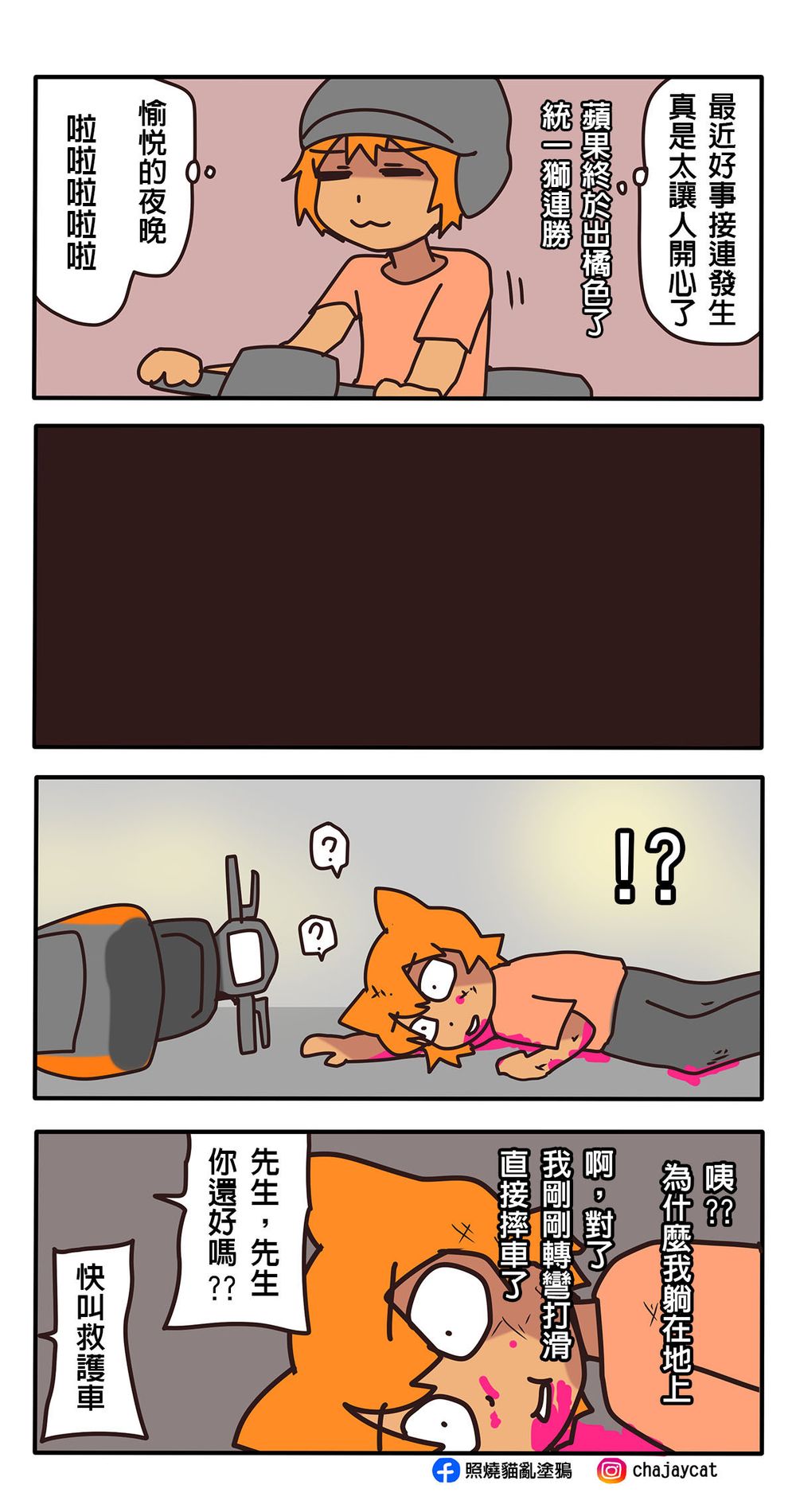 轉彎自摔我也有…內心超X,只因新鋪的人行道部份下雨變光滑,兩輪同時滑胎,當下真的為什麼我躺在地上…連壓車都沒怎麼躺的…