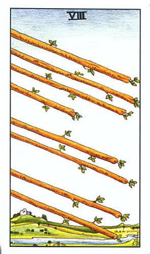 急速飛馳的權杖象徵著某種十分快速的景象,正在努力於某項事物的你,或許可以進入最後衝刺階段,你所做出的努力馬上就要得到成熟的甜美果實,猶豫於某項事物的你,或許不用思考太多,抉擇的時刻很快就要到來,相信自己一定能做出優秀的選擇。
