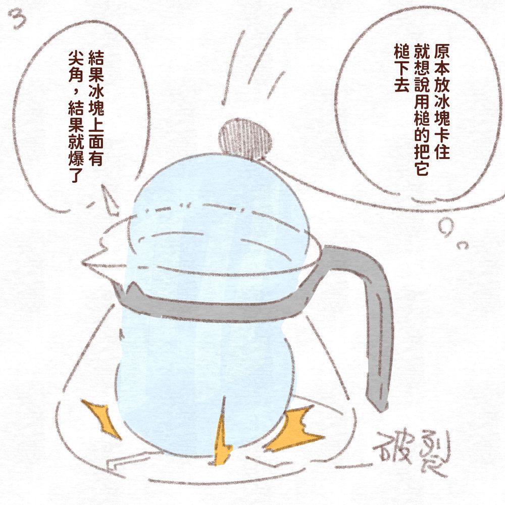 拿起壺來想說,怎麼有冰塊在底下