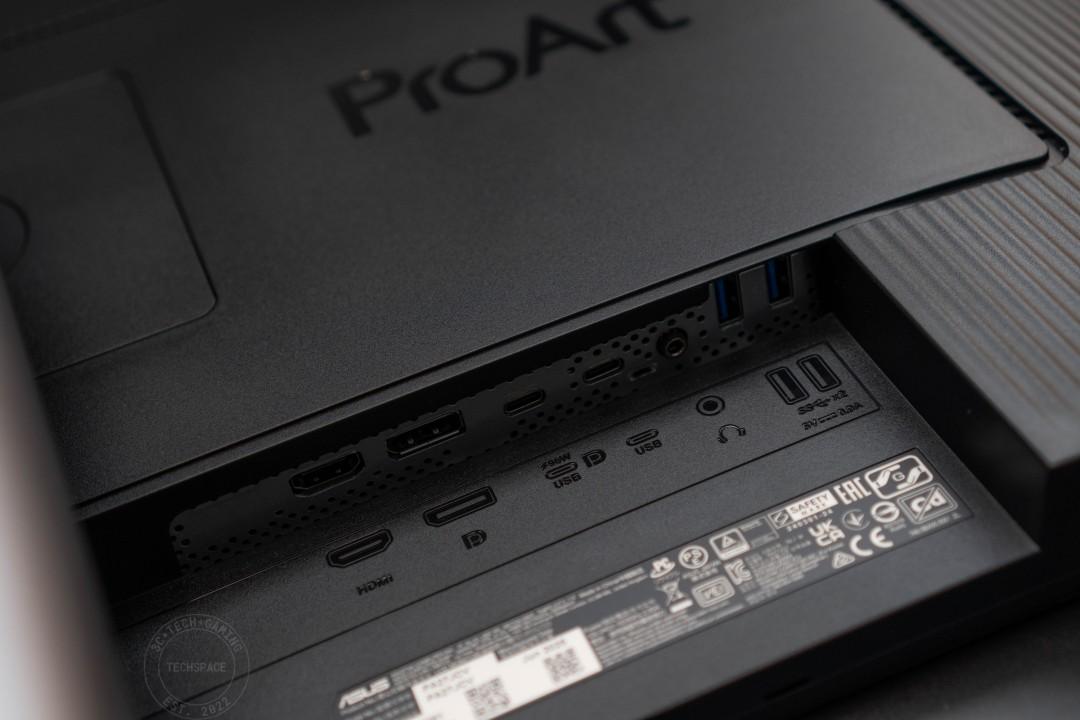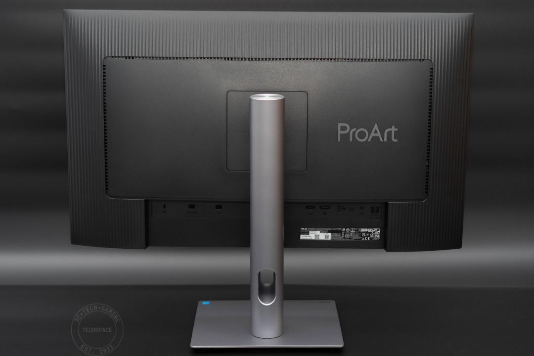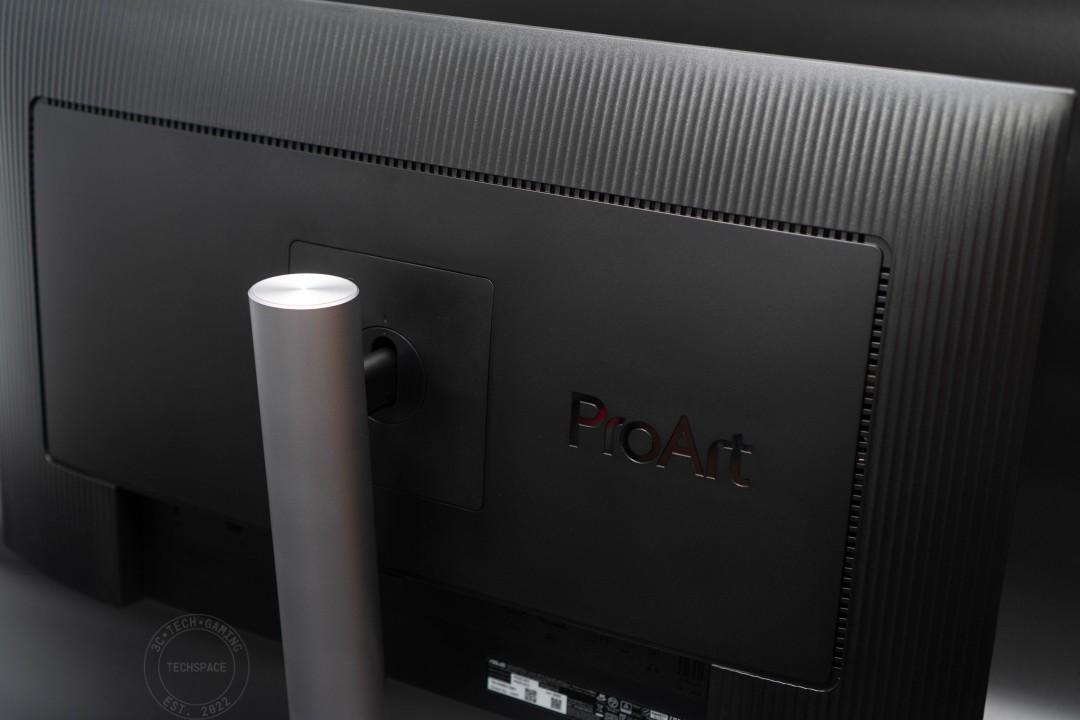 首先看看 ProArt Display PA27JCV 的背面設計,採用塑料背蓋搭配簡約的 ProArt 字樣作為點綴,周圍則是有柵紋線條設計,視覺上還是相當不錯的質感。
