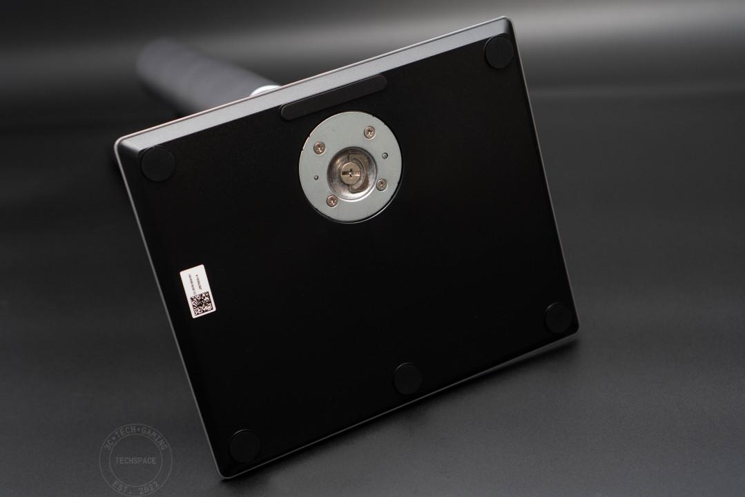 底座背面則是有大量橡膠防滑墊輔助,與支架間的安裝則是手轉螺絲固定。