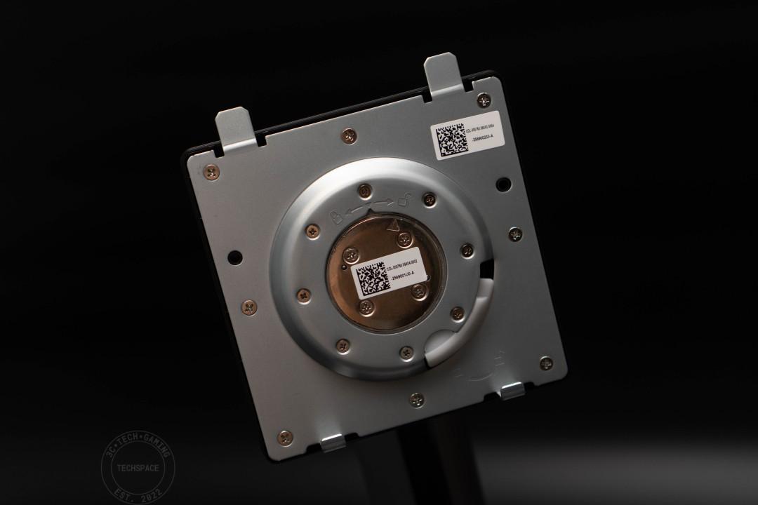 建議在安裝時一定要先將 VESA 底座和支架相連後,再去和顯示器對接,安全上會比較有保障。另外,眼尖的使用者也能注意到底座本身有一個手轉卡扣,同時也有旋轉鎖定的指示,主要是可自由根據使用需求調整安裝方向,方便自定義。