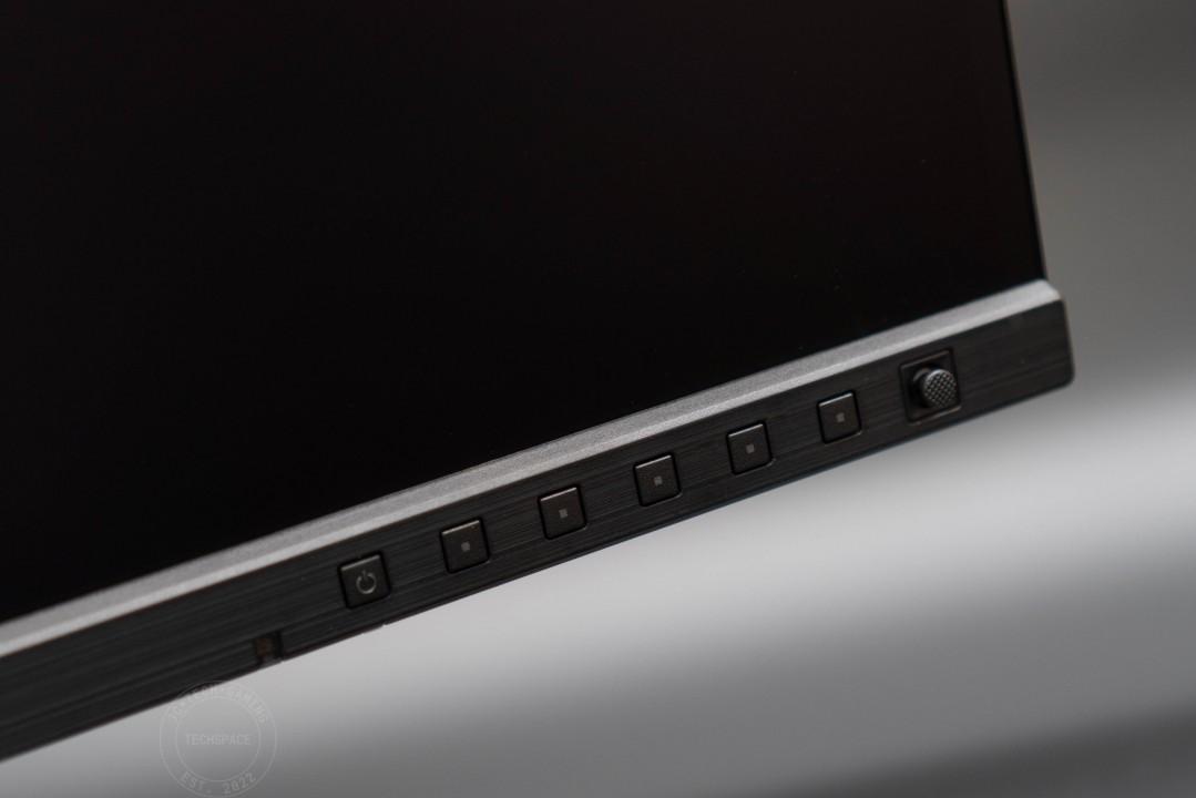 ProArt Display 系列顯示器普遍都是將控制區塊集中在顯示器正面,讓使用者能夠更直覺快速的調整參數,主要控制鍵也從傳統的上下控制調整為當前主流的五向 OSD 搖桿設計,搭配額外的選單、多組快速鍵和電源開關,最左側則是電源 LED 指示燈。