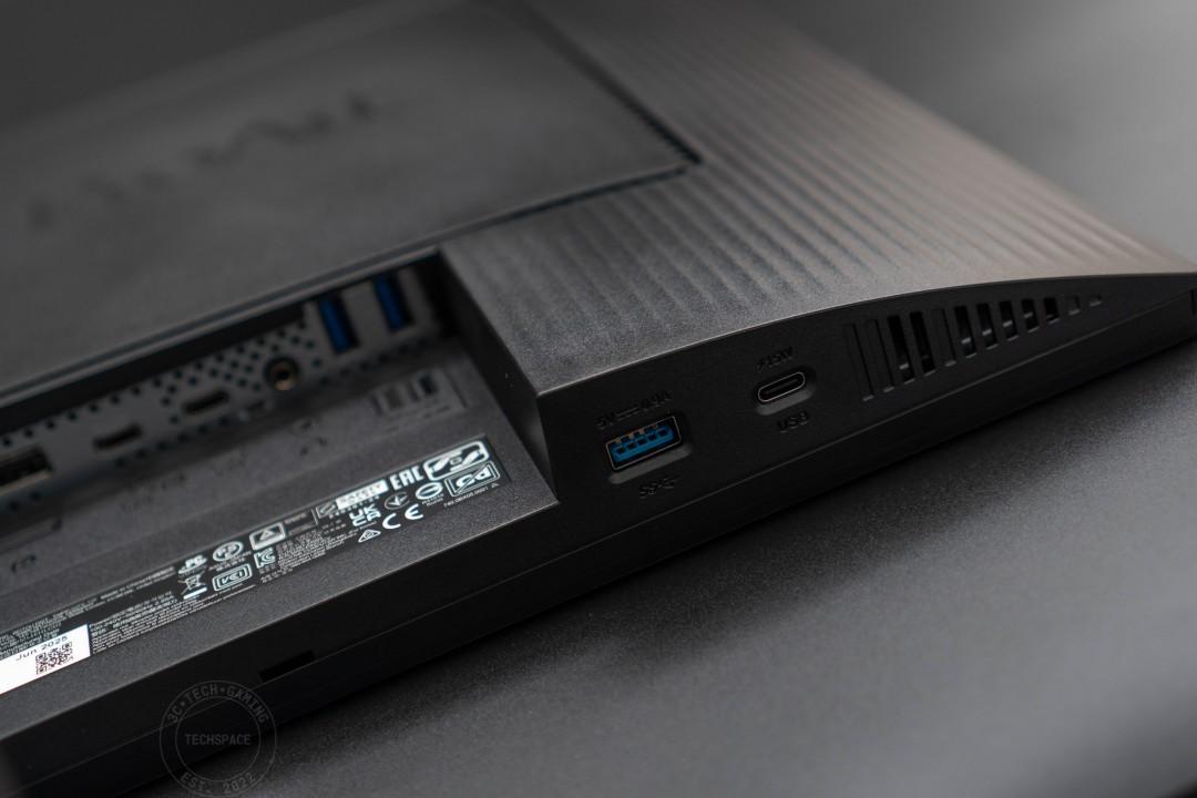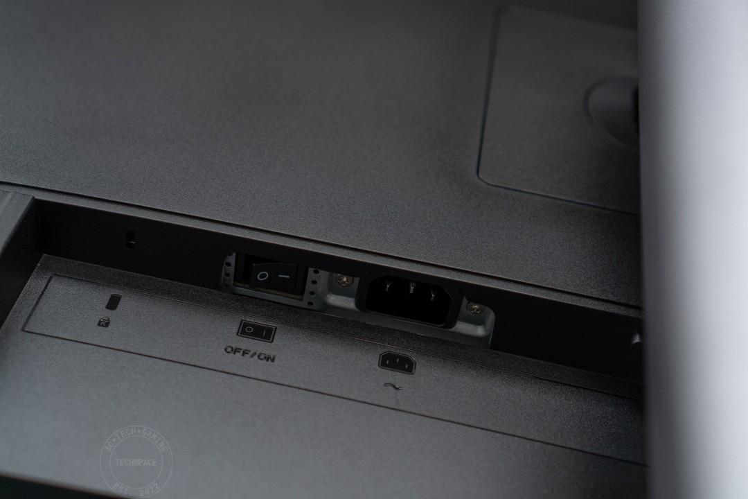 I/O 方面集中在顯示器後方,一側具備 AC 電源的獨立開關和供電口。