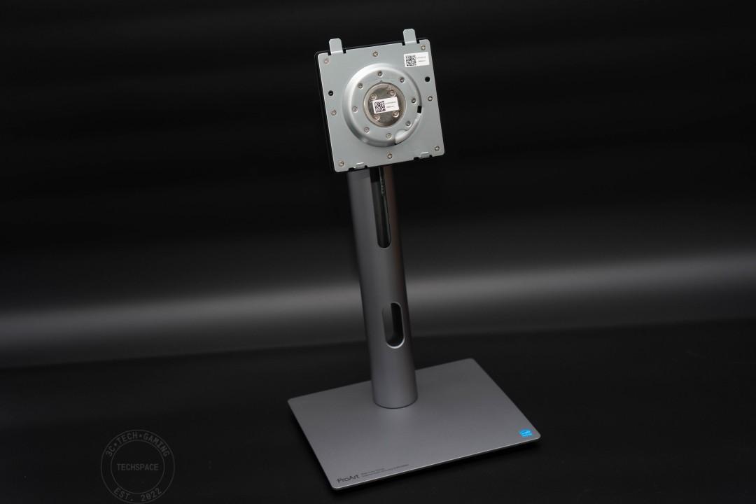 搭配的支架本身可支援 0~130mm 的高度調整、左右旋轉 ±30°、上下旋轉 ±90°以及 23°~-5°的前後傾斜,支架操作的彈性是相當不錯。