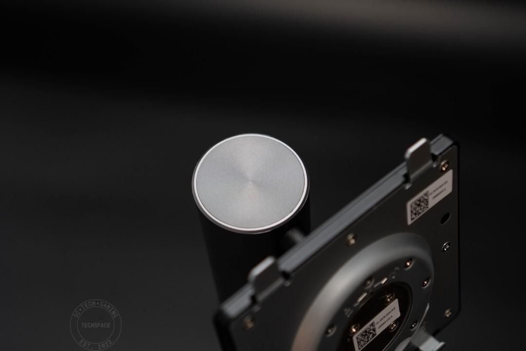 支架頂部只有簡約的金屬同心圓髮絲紋線條設計,這部分就和其他 ROG 系列的支架不同,沒有額外放上可安裝相機支架的螺孔,有前置鏡頭需求的話需額外安裝。