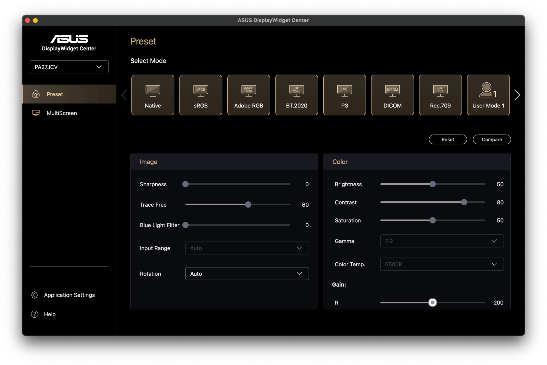 軟體方面,無論是 Windows 還是 macOS 系統,都有提供對應的 ASUS DisplayWidget Center 軟體可搭配使用,安裝後就可以直接快速在軟體中切換各式硬體參數如亮度、對比或是 Preset 顯示模式等等,它也支援 macOS 利用快捷鍵調整螢幕亮度的功能。
