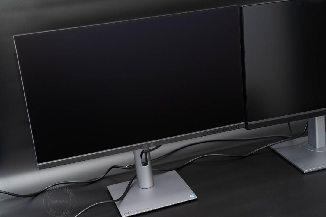 兩者同樣都是 27 吋顯示器,但仔細看的話可以發現 PA278CGV 的底座明顯要比 PA27JCV 大不少,佔用的桌面空間會大上許多(當然如果是使用顯示器支架的話就不成問題),而支架部分前者也沒有額外挖出整線槽(支架背面額外使用線材扣具)。另外官方也有提到,與前代產品相比,ProArt Display PA27JCV 採用節省空間的底座,體積縮小了 33%,外型也更加纖薄,最薄處僅 8mm。就設計質感來說,PA27JCV 整體還是更有現代感一些。