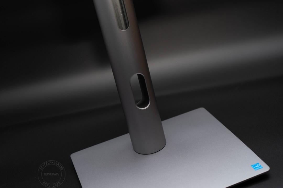 底座和支架部分主要分為三件式設計,和一般傳統 VESA 底座已預先安裝在支架上不同,好處是可以減少包材的厚度。