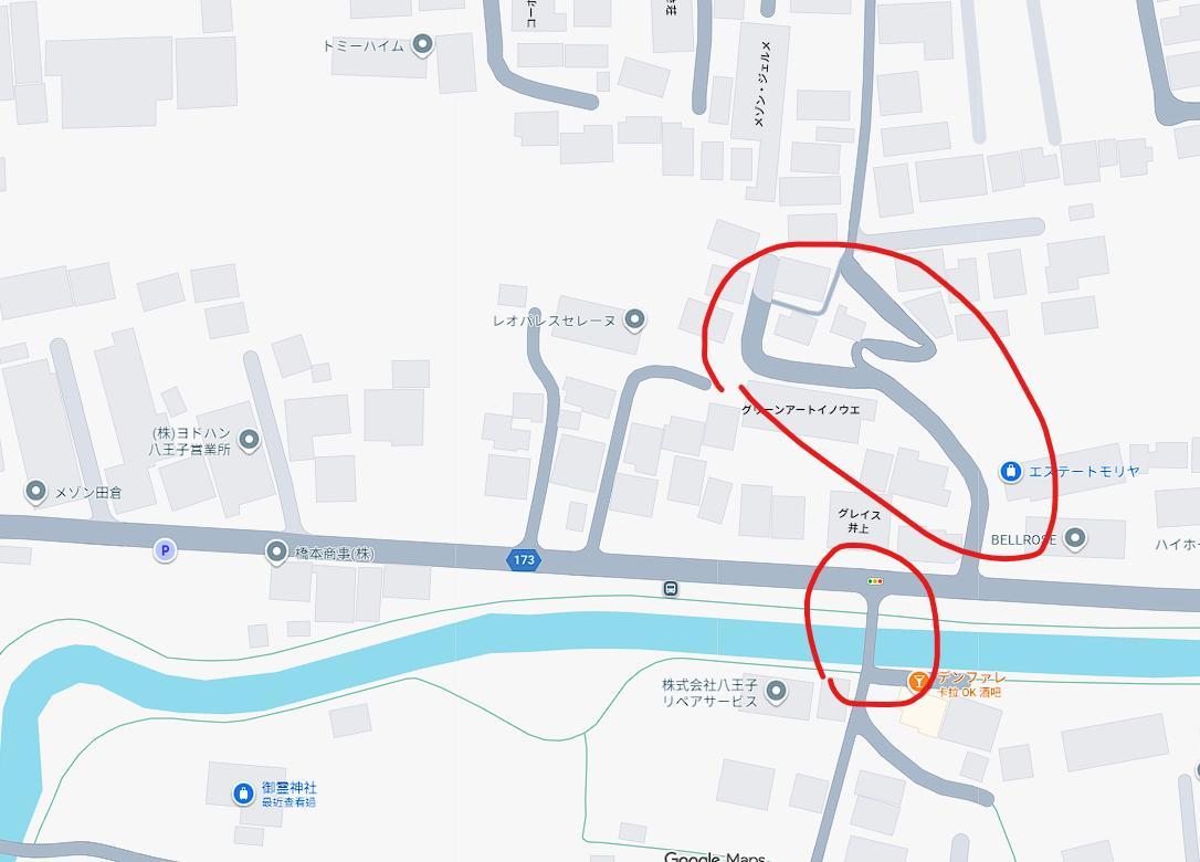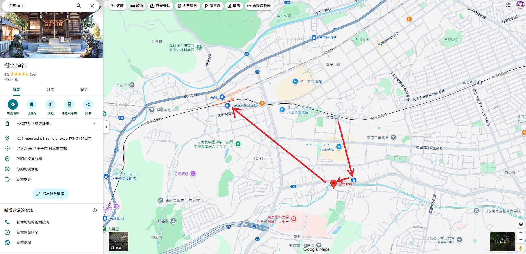 大致的地圖(鐵路搭到南大澤站 / 公車從北野搭八60抵達) :
