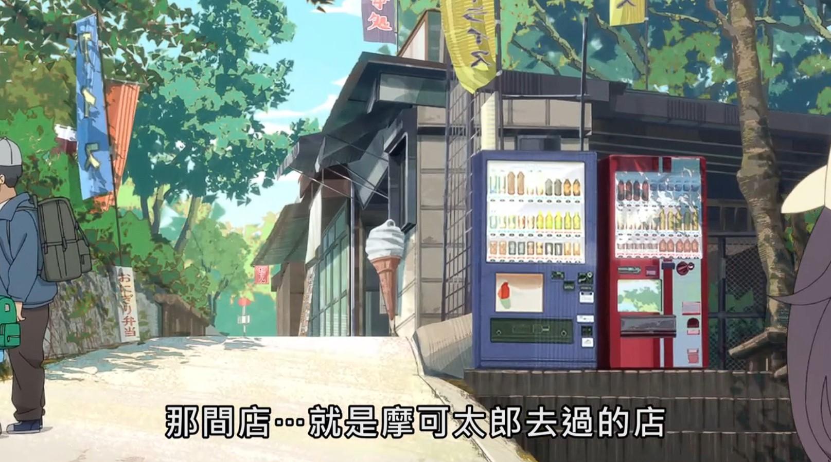 (纜車站入口,右邊是主角們坐的兩人纜車,左邊是一群人坐的大型纜車)