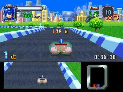 《洛克人賽車》(ロックマンバトル&チェイス/Mega Man: Battle & Chase)是元祖洛克人系列外傳性質競速類型的 PS 平台遊戲,同時也是洛克人系列首款採用 3D 建模技術的作品,日版發售於 1997 年 3 月 20 日,歐版發售於 1998 年 4 月 3 日,美版似乎考量到同類型趣味派對賽車遊戲太多競爭太過激烈並未發售。