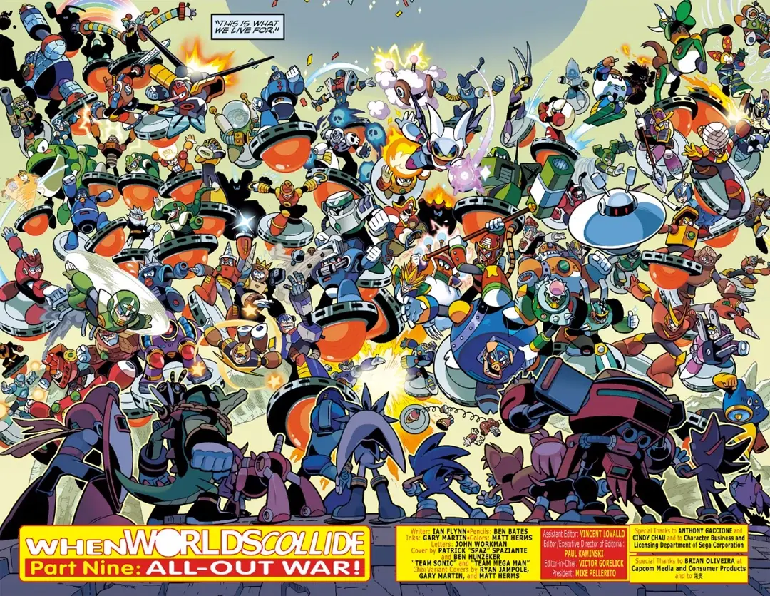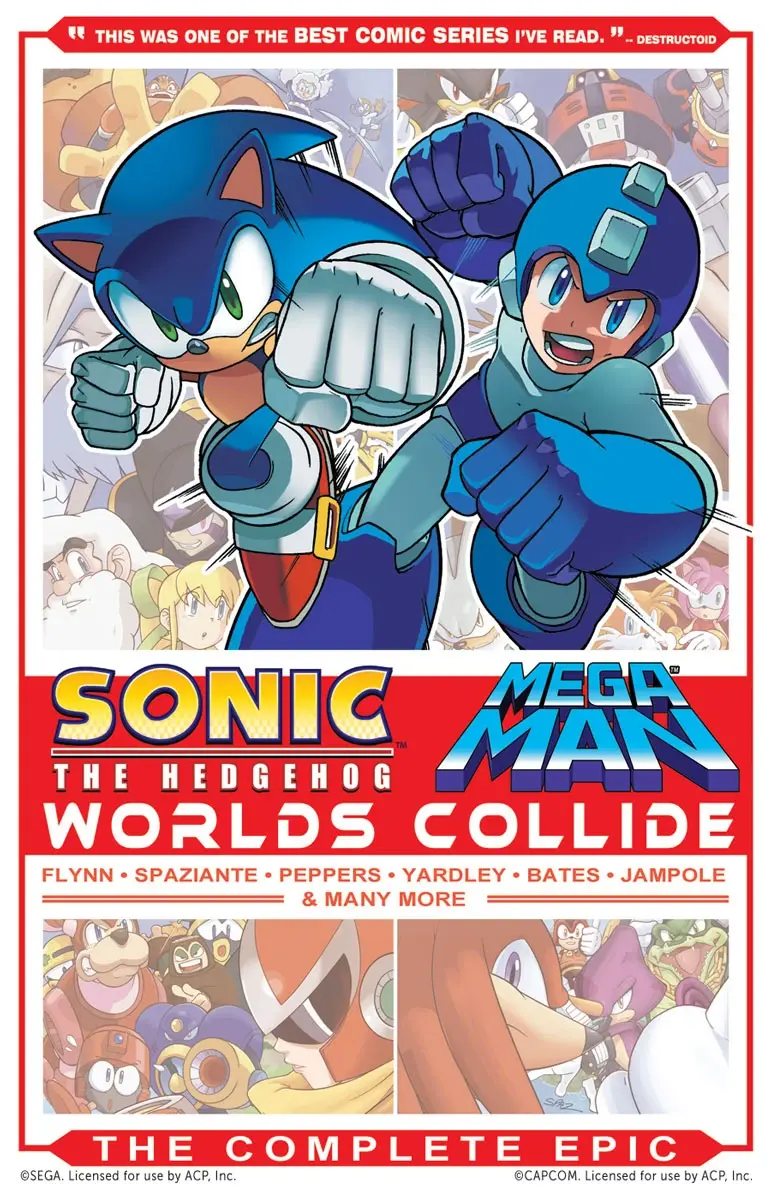 其實索尼克與洛克人除了在《任天堂明星大亂鬥 for 3DS/Wii U》以及《任天堂明星大亂鬥 特別版》有互相參戰之外,早在美國阿奇漫畫自 2013 年 4 月 10 日開始連載的《索尼克 & 洛克人 世界碰撞》(Sonic & Mega Man: Worlds Collide)就已經有特別跨界合作過了,故事描述蛋頭博士與威利博士兩大邪惡天才聯手,實施一連串陰謀詭計讓兩位藍色英雄互相穿越在兩個世界不停奔波解決事件,兩邊登場角色幾乎是全明星包辦等級,戰鬥場面非常豪爽過癮,畫風符合遊戲原作風格保證能夠滿足兩邊粉絲。