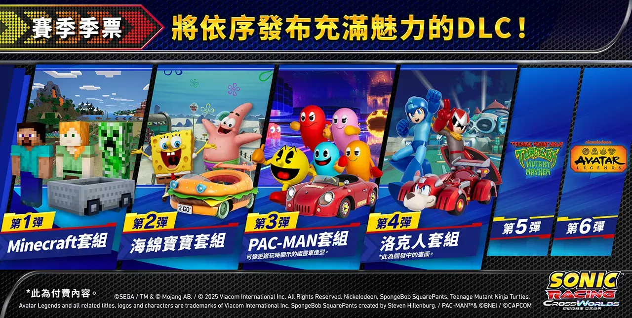 世雅股份有限公司宣布,預計於 2025 年 9 月 25 日(四)發售的 PlayStation 5、PlayStation 4、Xbox Series X|S、Xbox One、Nintendo Switch、PC(Steam、Epic Games Store)軟體《索尼克賽車 交叉世界》,現已決定收錄於「數位豪華版」內的「季票」下載內容(DLC)第 4 彈將與「洛克人」合作。